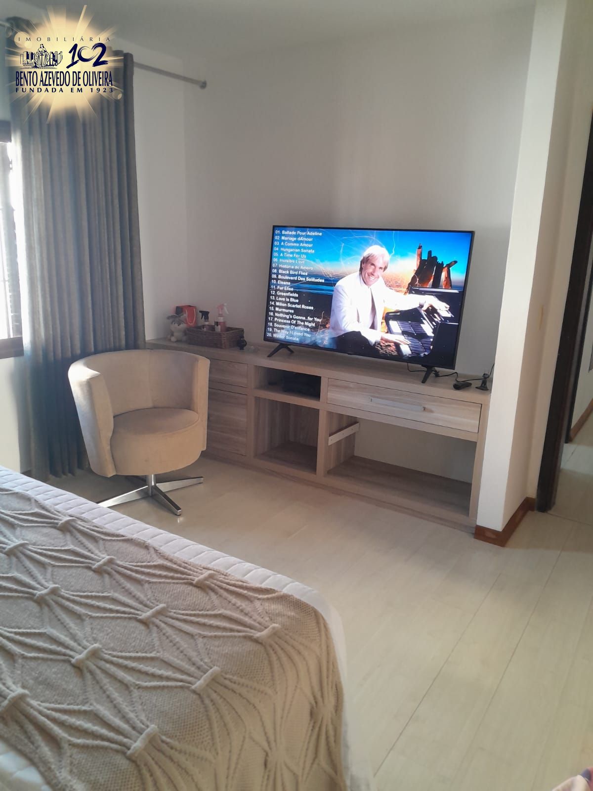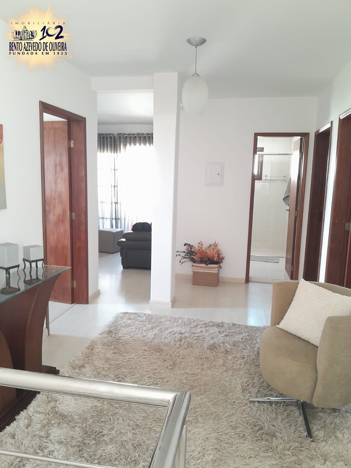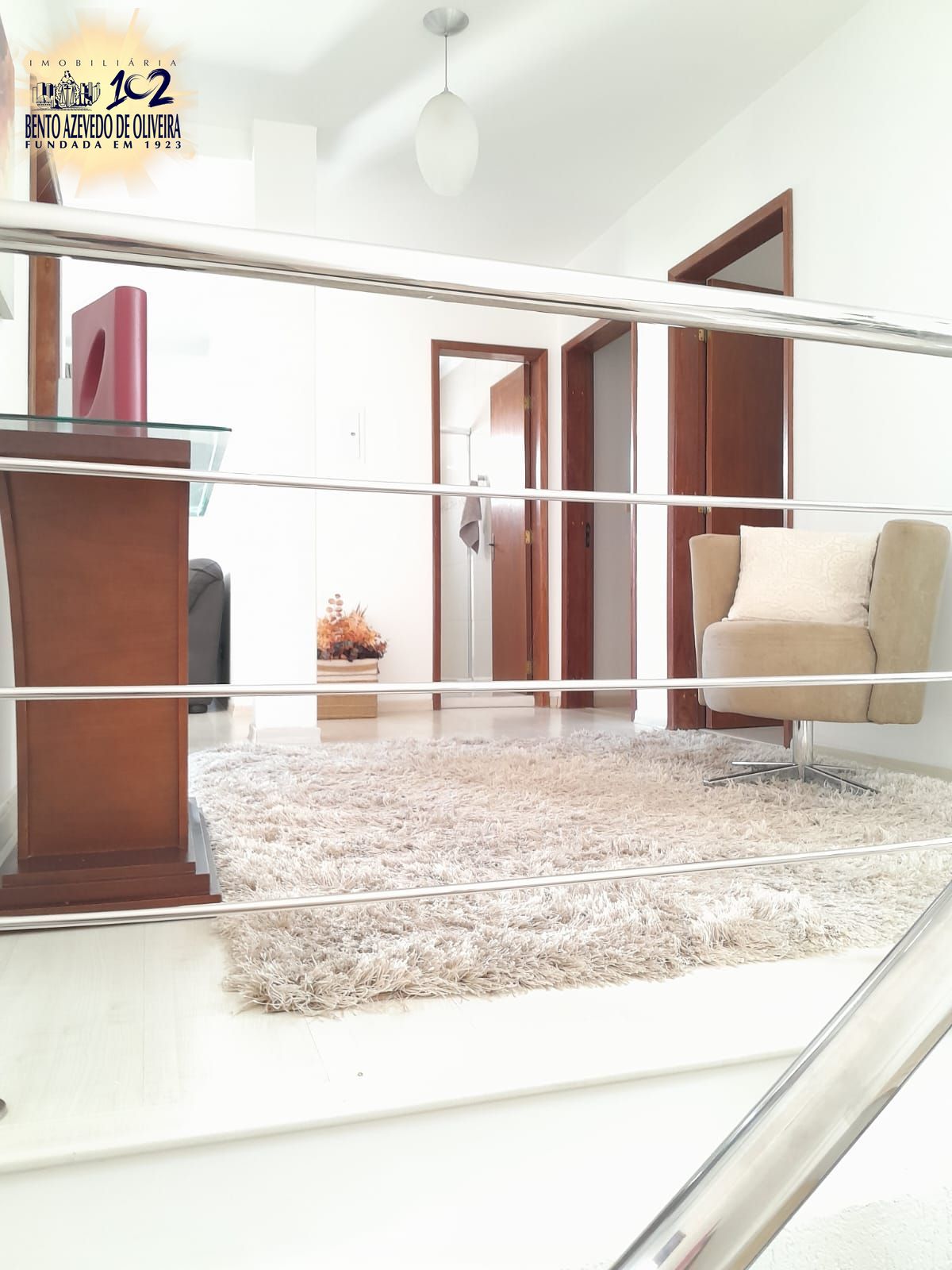 No segundo pavimento, a área íntima conta com mais três amplos dormitórios, além de uma sala de TV / cinema. Conta ainda com uma sacada com churrasqueira.