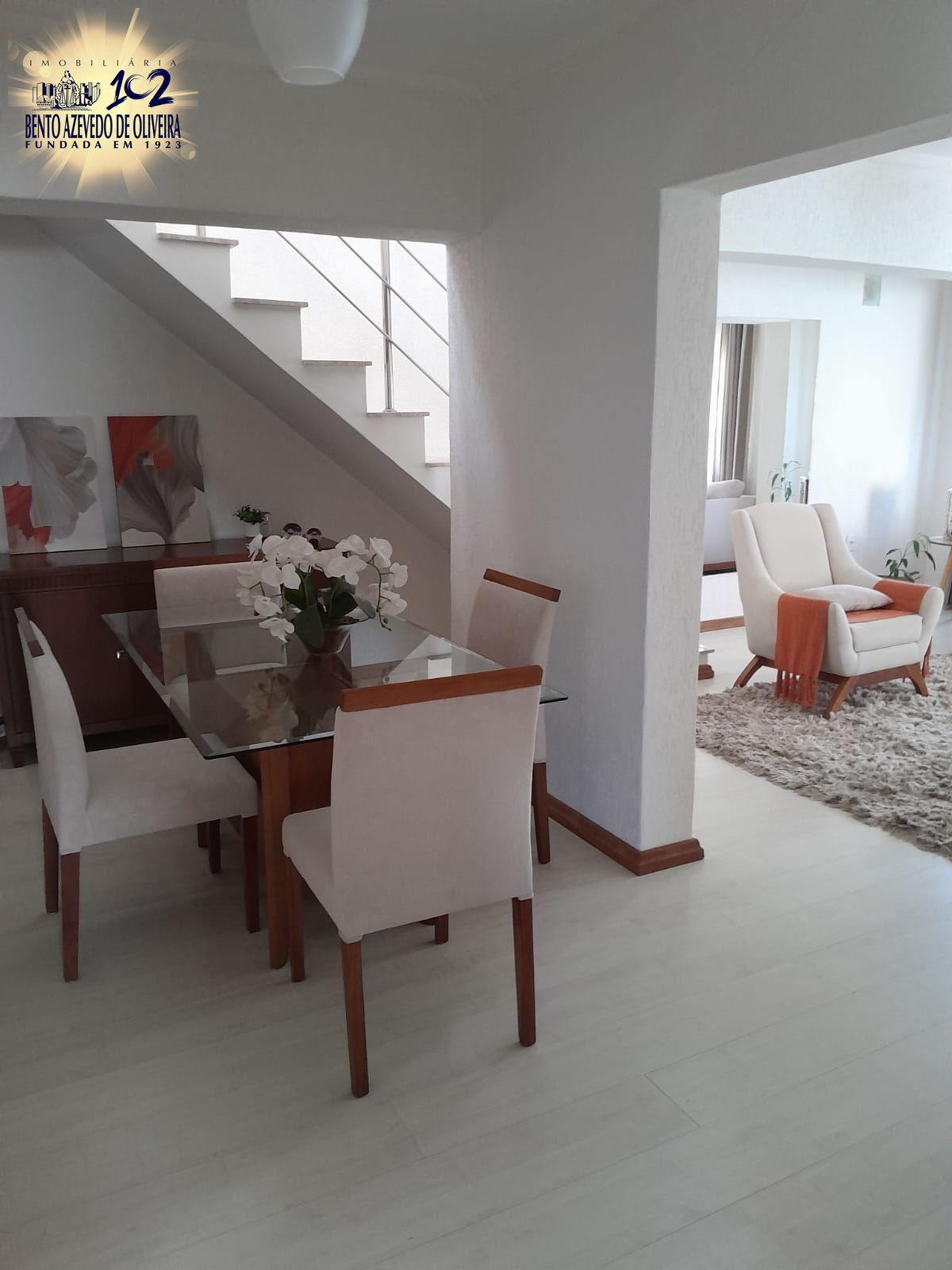 No pavimento térreo, o imóvel oferece uma ampla sala de estar e jantar, banheiro social, cozinha sob medida, área de serviço individual, e como destaque, uma linda suíte com closet!