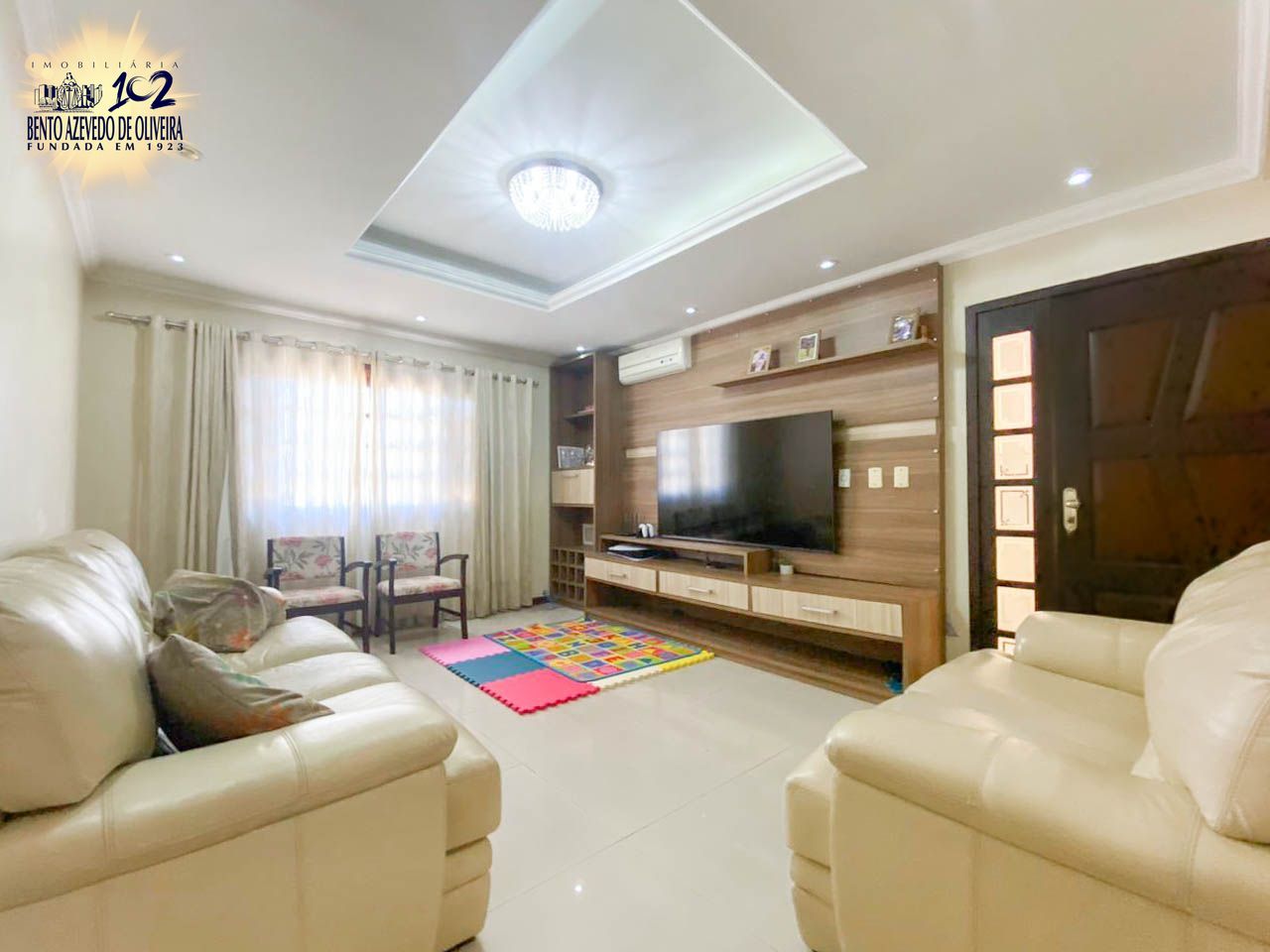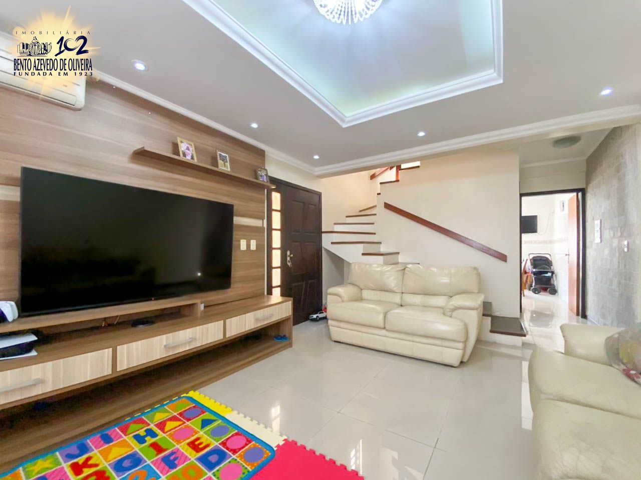 São mais de 250,00 mt² de área privativa, com uma ampla sala de estar, com piso em porcelanato e rebaixamento em gesso, cozinha com móveis sob medida e área de serviço. No segundo piso mais uma sala de estar, 2 dormitórios um sendo suíte e banheiro social. No terceiro piso espaço para mais um dormitório ou sótão. Ficam os ar condicionados.