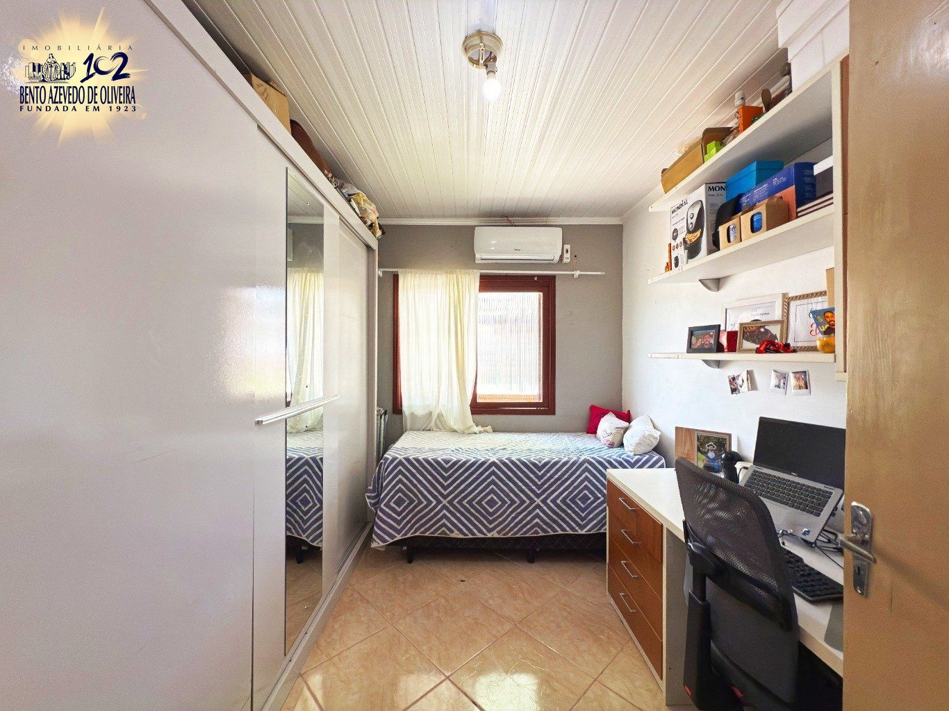 No segundo piso, estão os três dormitórios, sendo uma suíte com sacada frontal, além de banheiro social. O pavimento conta ainda com boa iluminação natural. O imóvel possui uma área fechada e ensolarada, destinada à lavanderia.
