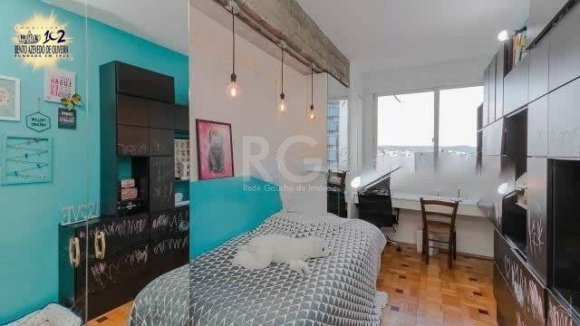 Retrofitado e espaçoso apartamento c/ 190m2 privativos.Hall de entrada, gabinete, banho social, 3 dormitórios (1 suíte master c/ closet), lavabo, living 4 ambientes em piso parquet, sala jantar separada e vista panorâmica, cozinha/copa, despensa e dependência completa de empregada.Garagem. Condomínio: segurança 24h, elevador e zelador.