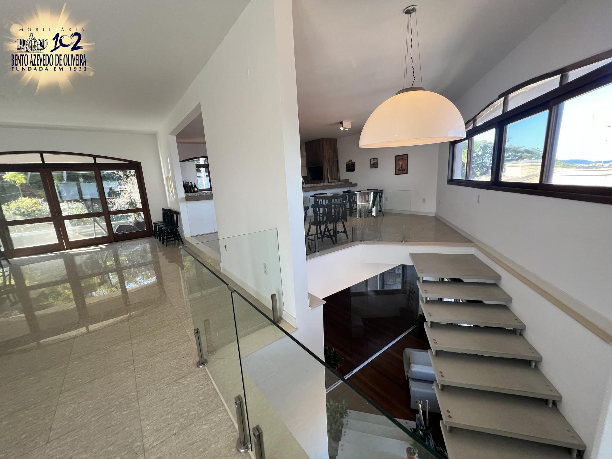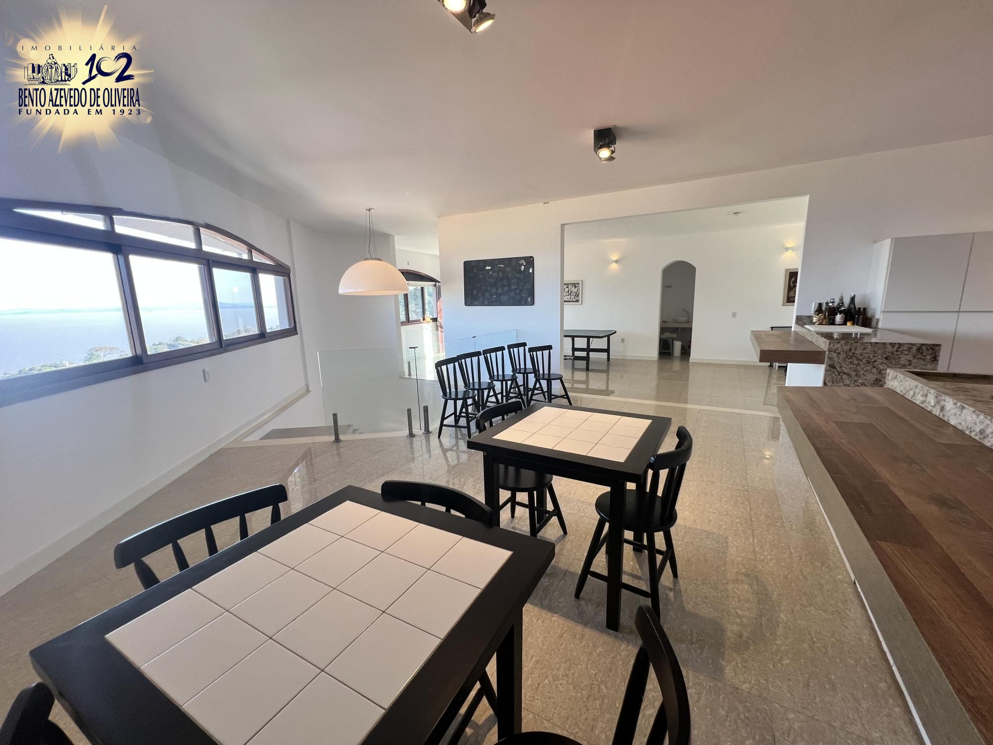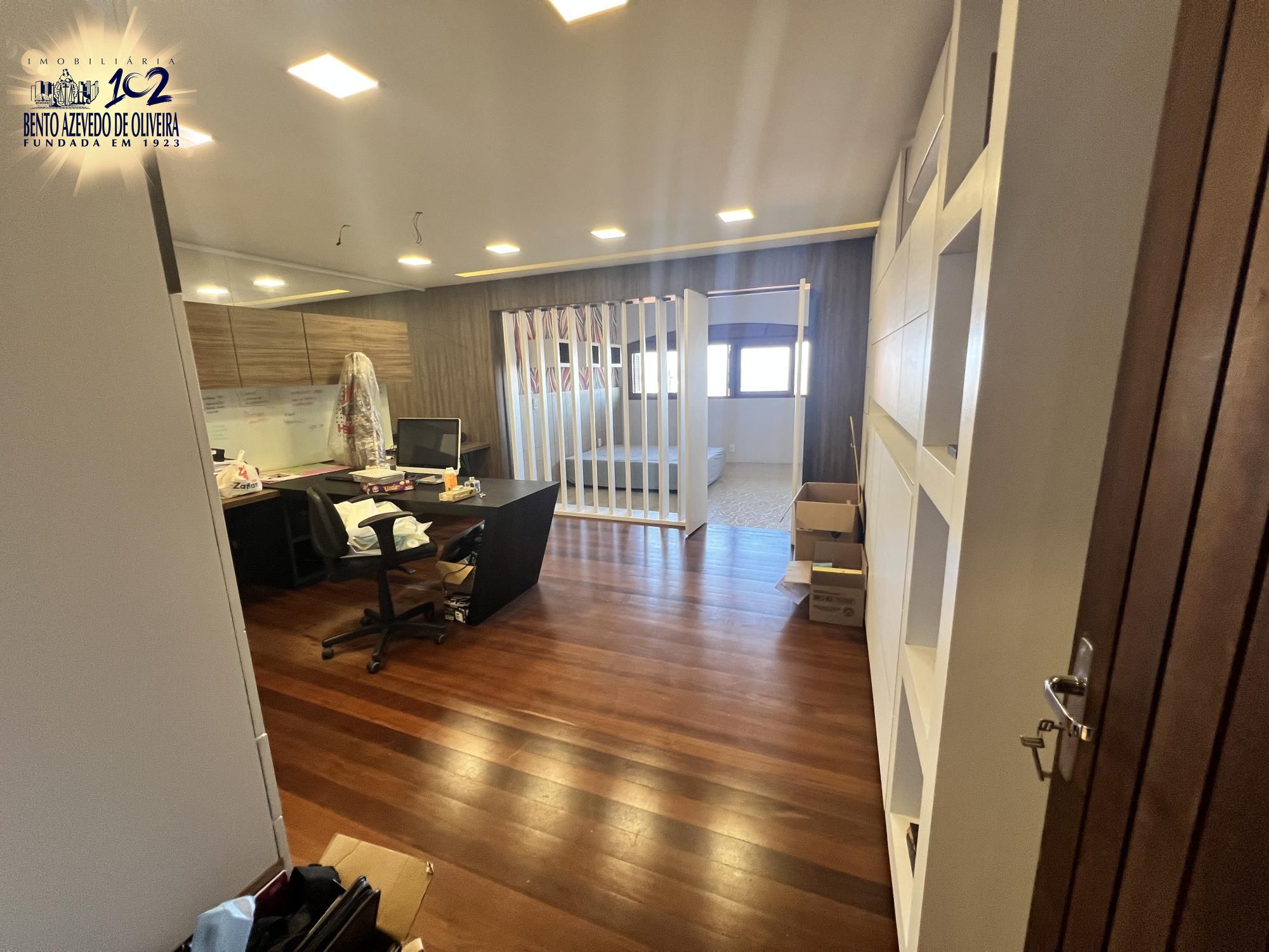 Belíssima residência no Sétimo Céu, junto ao bairro Tristeza. Com 645m² de área construída o imóvel tem um excelente projeto com funcionalidade e ótima distribuição do espaço. A localização do imóvel bem como as aberturas grandes em todos os cômodos para todos os lados permite a apreciação da linda vista da zona sul e do Guaíba. A residência possui quatro suítes sendo a suíte master com closet e banheiro com hidro massagem e uma sala de estar íntimo. Uma das outras três suítes se integra com um espaço amplo de escritório. O living para três ambientes com lareira está integrado a uma sacada de frente. A sala de jantar se conecta com a cozinha muito espaçosa e bem projetada com móveis sob medida e bancadas em granito. Possui lavabo junto ao living. No terceiro pavimento e bem individualizado existe um aconchegante salão de festas com aproximadamente 80m2, equipado com mesas e cadeiras, cozinha completa, churrasqueira e bancadas. Como mais uma opção de espaço alternativo, no quarto pavimento existe um terraço. A parte de serviço do imóvel conta com uma lavanderia independente e uma dependência de empregada com banheiro completo. A garagem é fechada para dois carros e há um espaço descoberto para mais um carro. O pátio dos fundos tem espaço para colocação de piscina e um cômodo que funciona como depósito com banheiro auxiliar. Também possui um canil cercado. Casa construída com excelente padrão construtivo, materiais de primeira linha, possui aquecimento solar, cisterna/ reservatórios para água da chuva com capacidade para15mil litros.