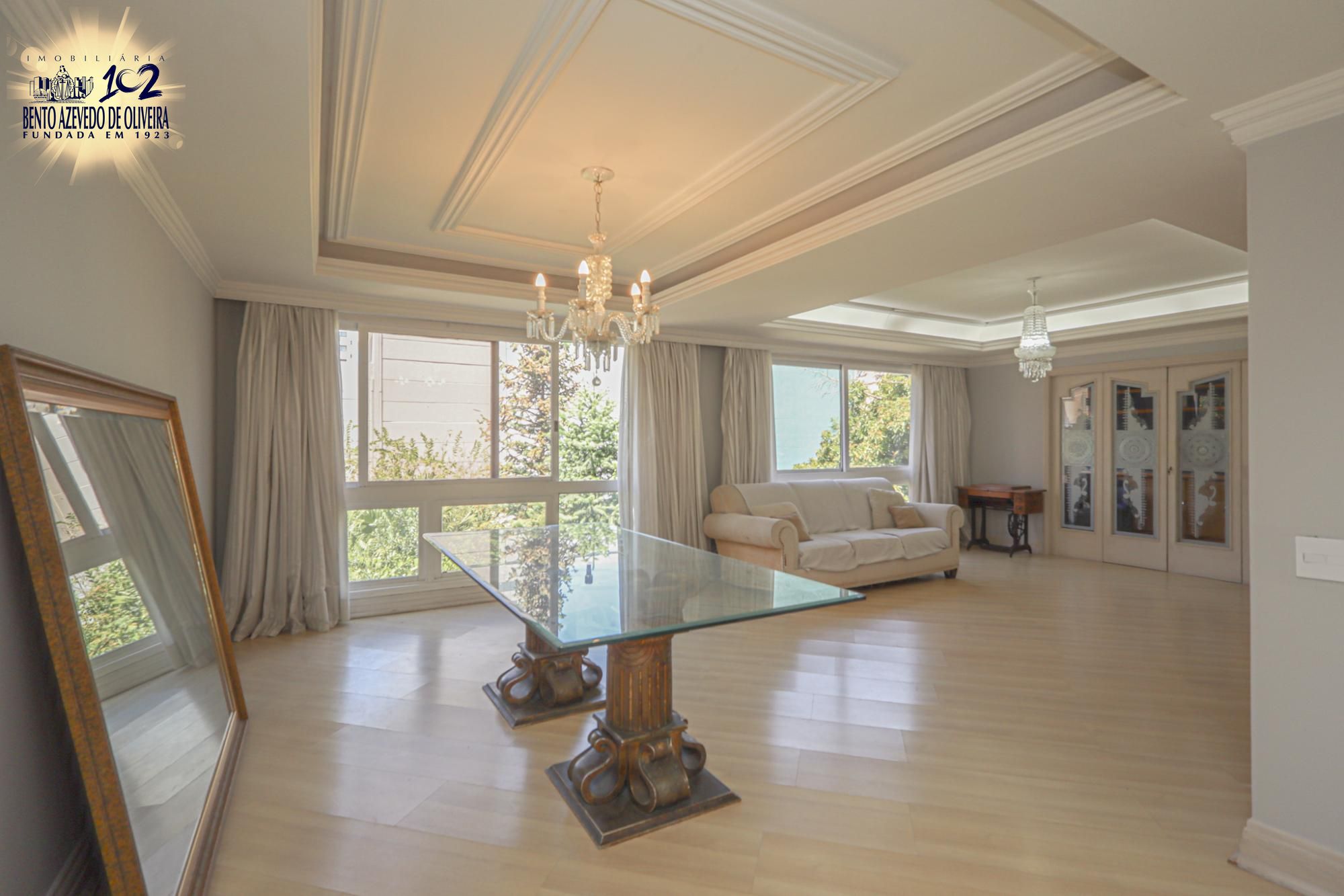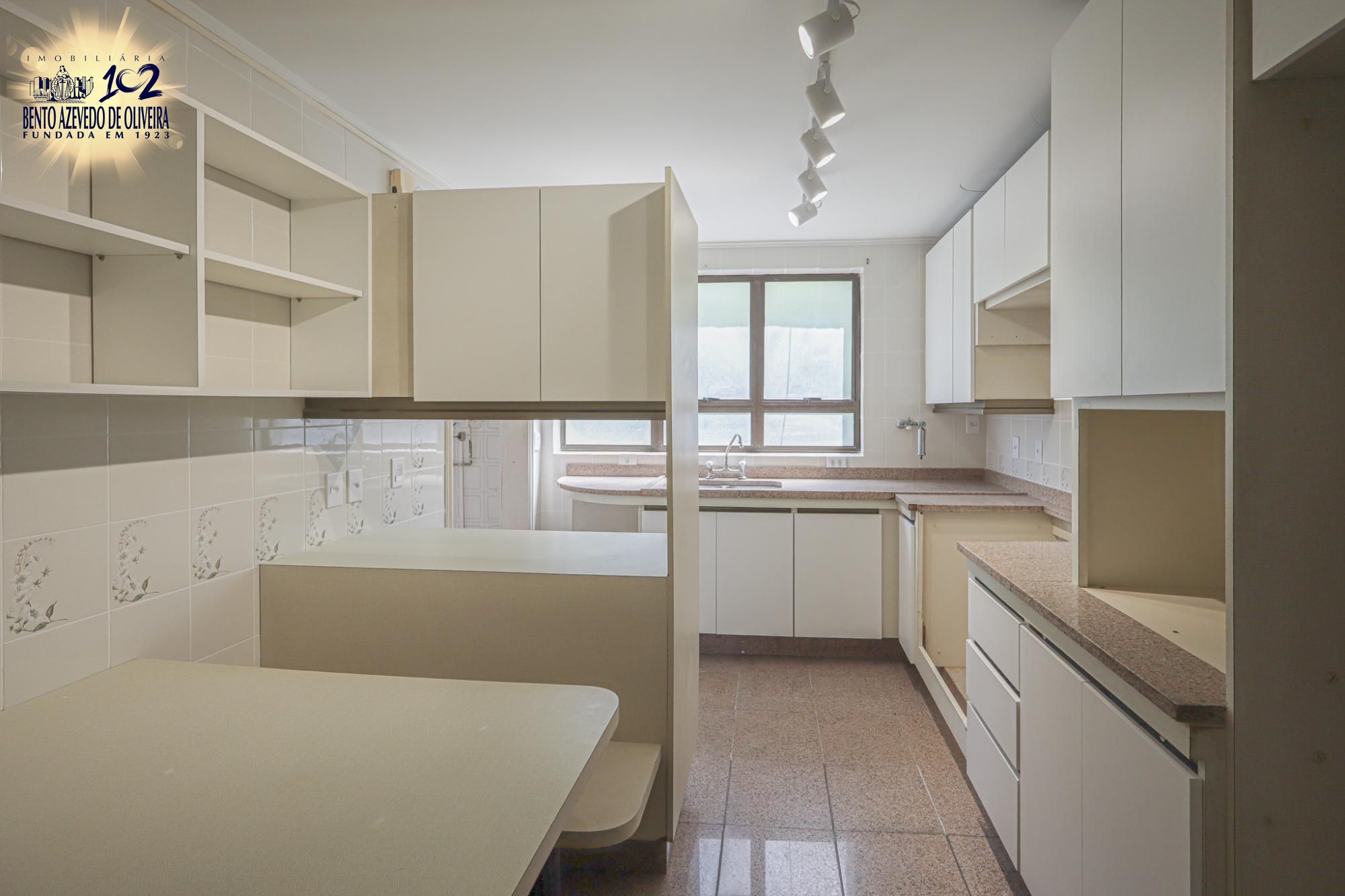 Apartamento semimobiliado com 224 m² de área privativa com 3 dormitórios sendo 1 suíte com closet e sacada, gabinete, lavabo, living amplo para 3 ambientes com sala de jantar e estar, cozinha montada com área de serviço individual com dependência de empregada completa. Possui 2 vagas de garagem individuais e cobertas.