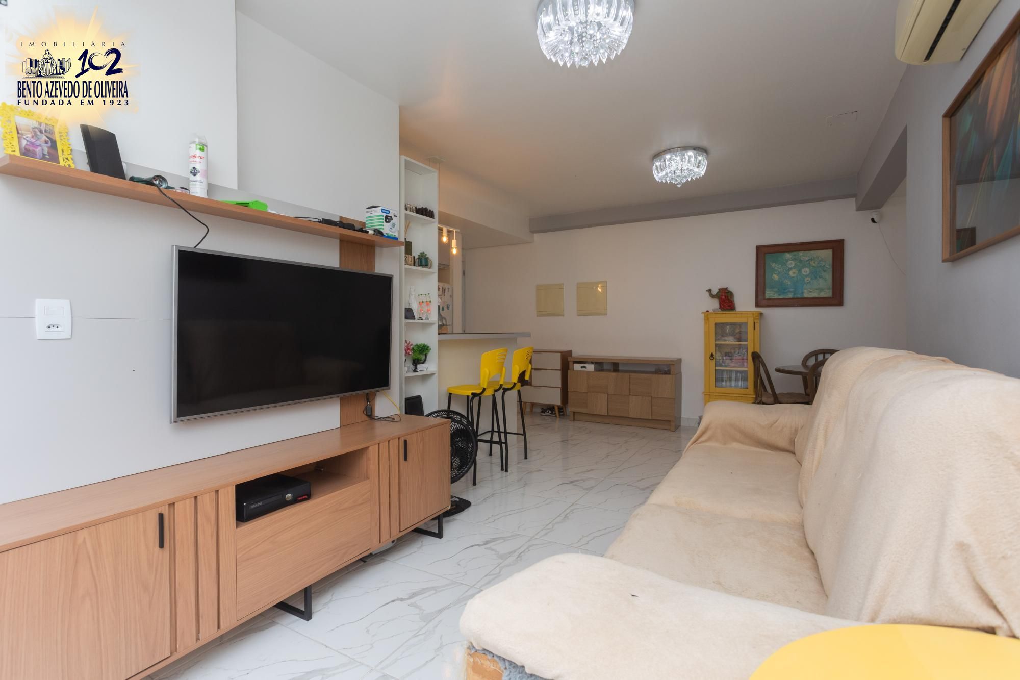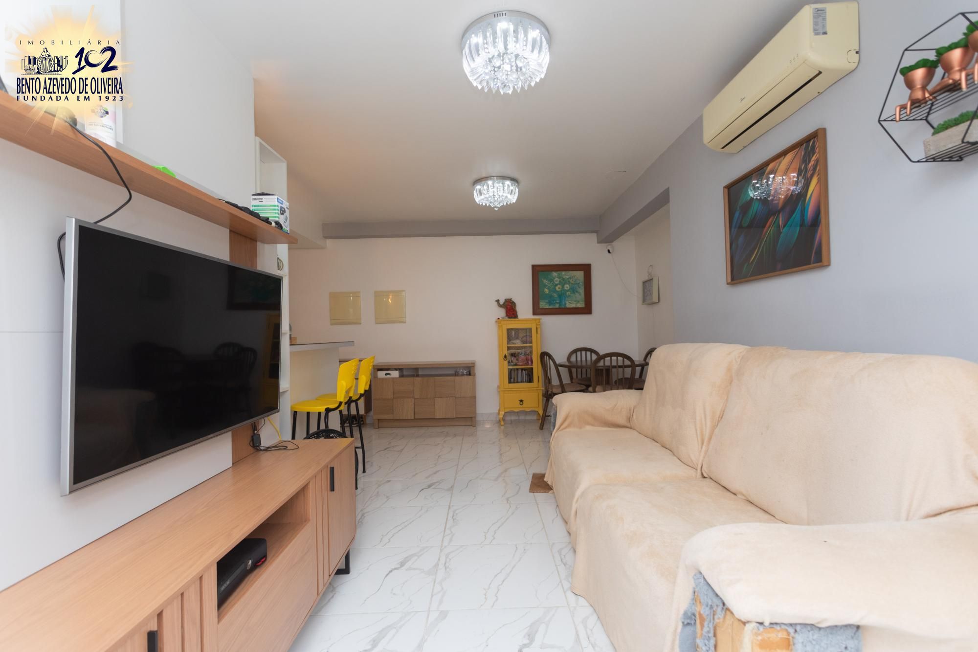 O imóvel conta com 3 dormitórios, sendo 1 suíte, banheiro social, ampla sala de estar com churrasqueira e cozinha funcional. Possui piso cerâmico, telas de proteção nas janelas e box de vidro nos banheiros.