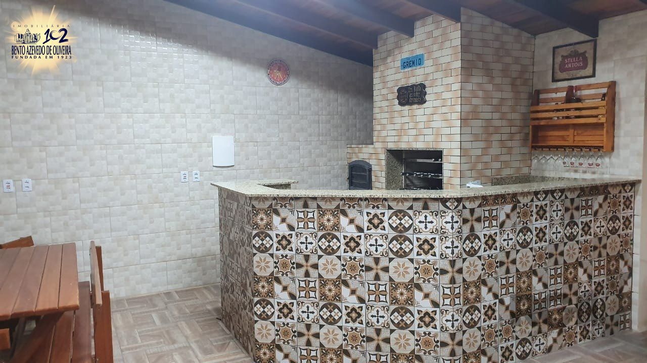 Casa térrea com 210 m² em um terreno de 12 x 31, com Hall de entrada, 3 dormitórios sendo uma suíte sala de 2 ambientes, banheiro social e cozinha que fica montada, móveis dos banheiros também ficam. Quatro (4) vagas na garagem, uma coberta e 3 descobertas. No fundo do terreno um salão de festas de 60m² com bancada de granito com pia (torneira elétrica), com churrasqueira elétrica rotativa, forno e fogão à lenha, banheiro, lavanderia e depósito.