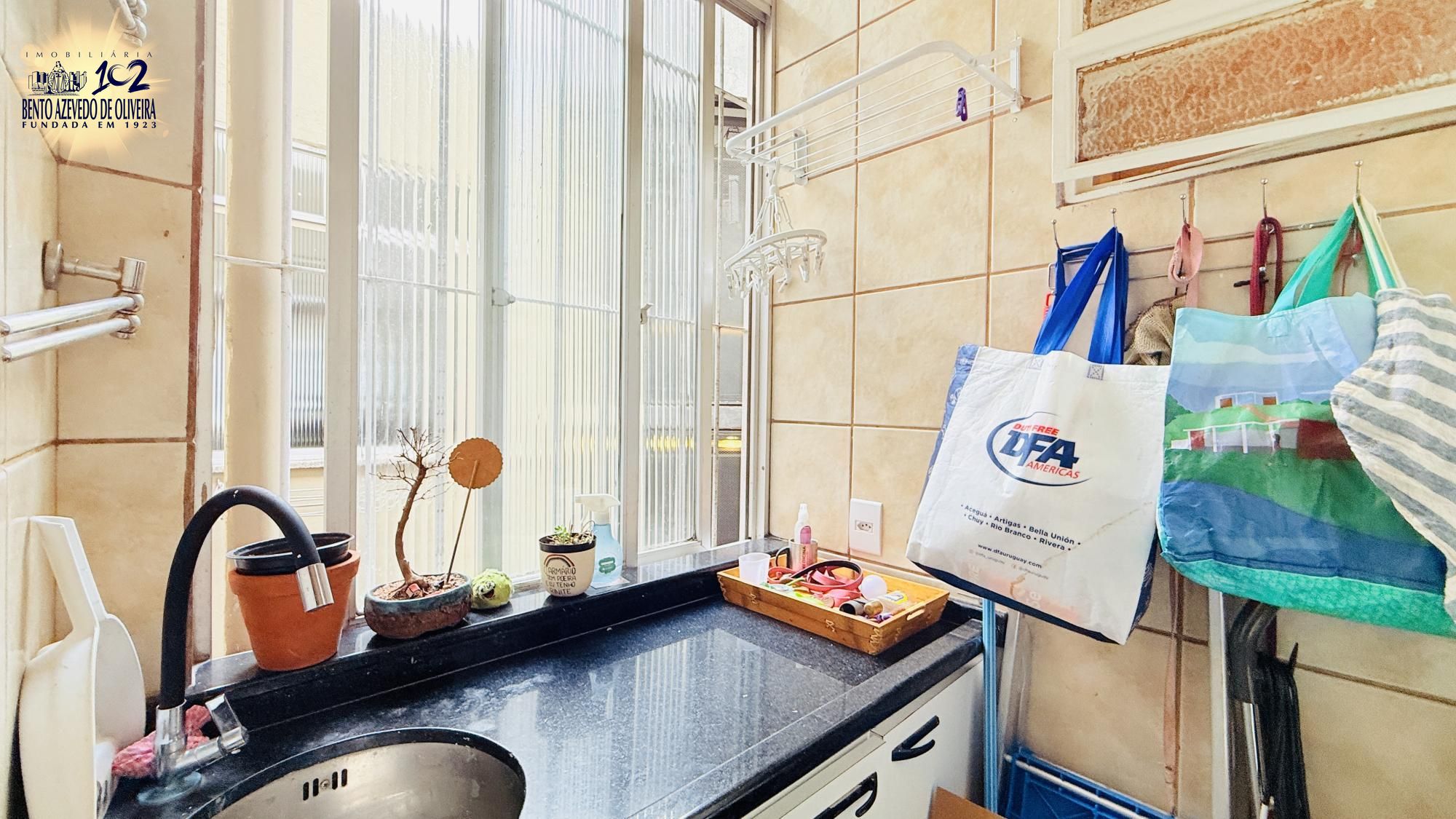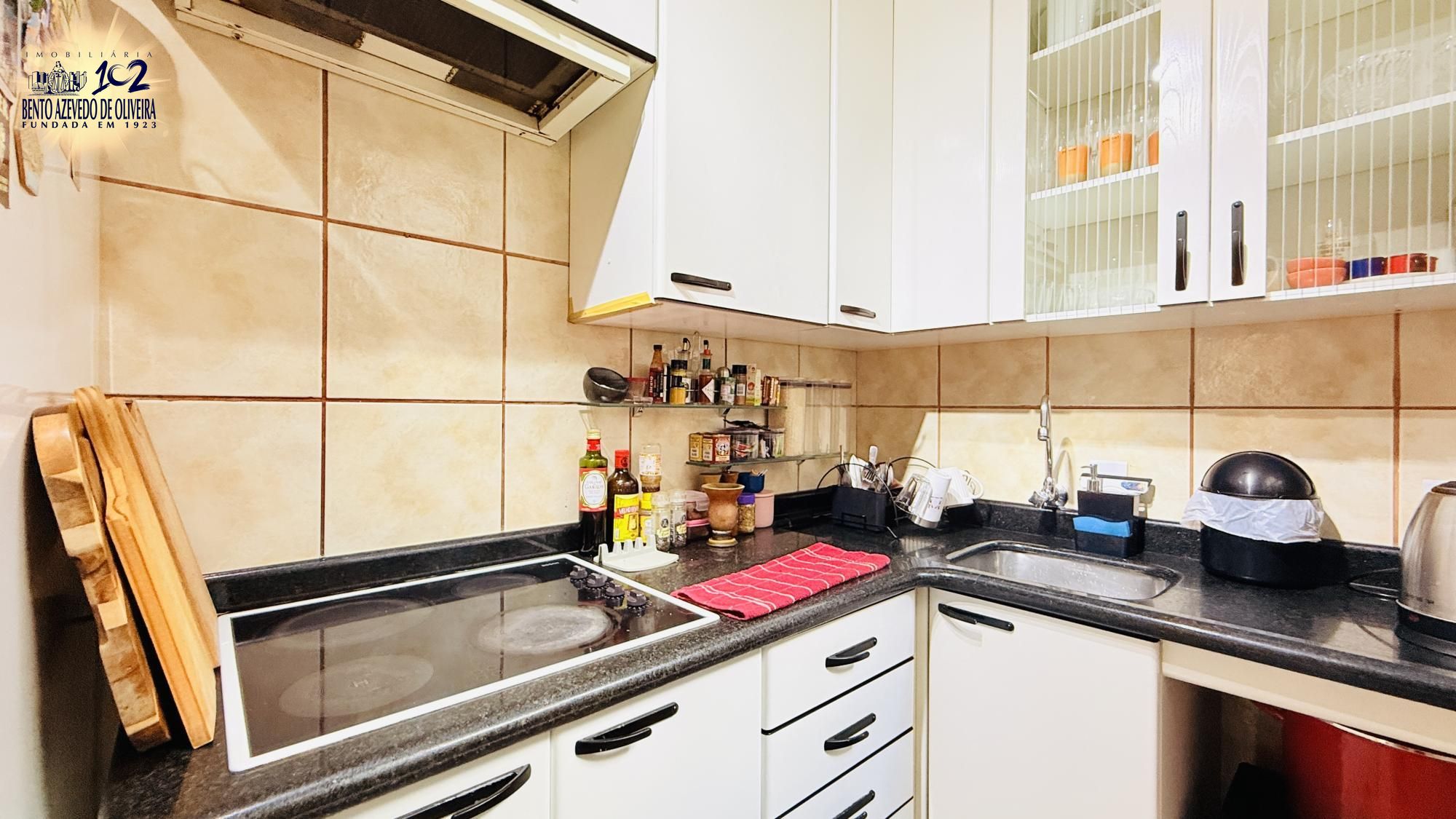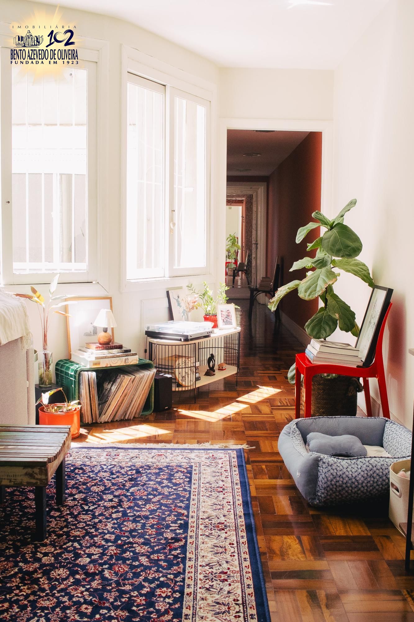 Na área íntima o imóvel conta com dois dormitórios, um atualmente sendo utilizado como escritório/dormitório de hóspedes e um banheiro social que atende ambos. Imóvel conta com uma vaga de garagem. Não possui elevador, mas apenas dois lances de escada.