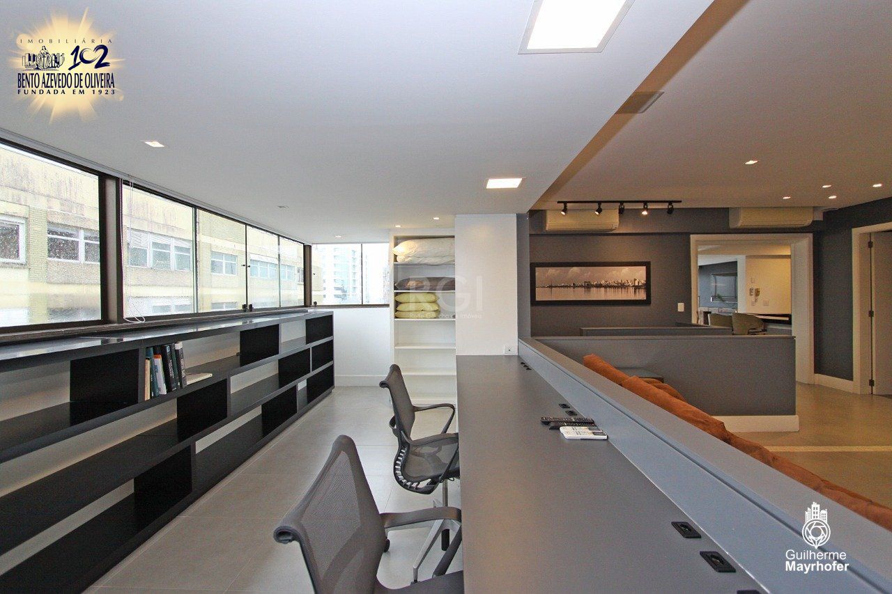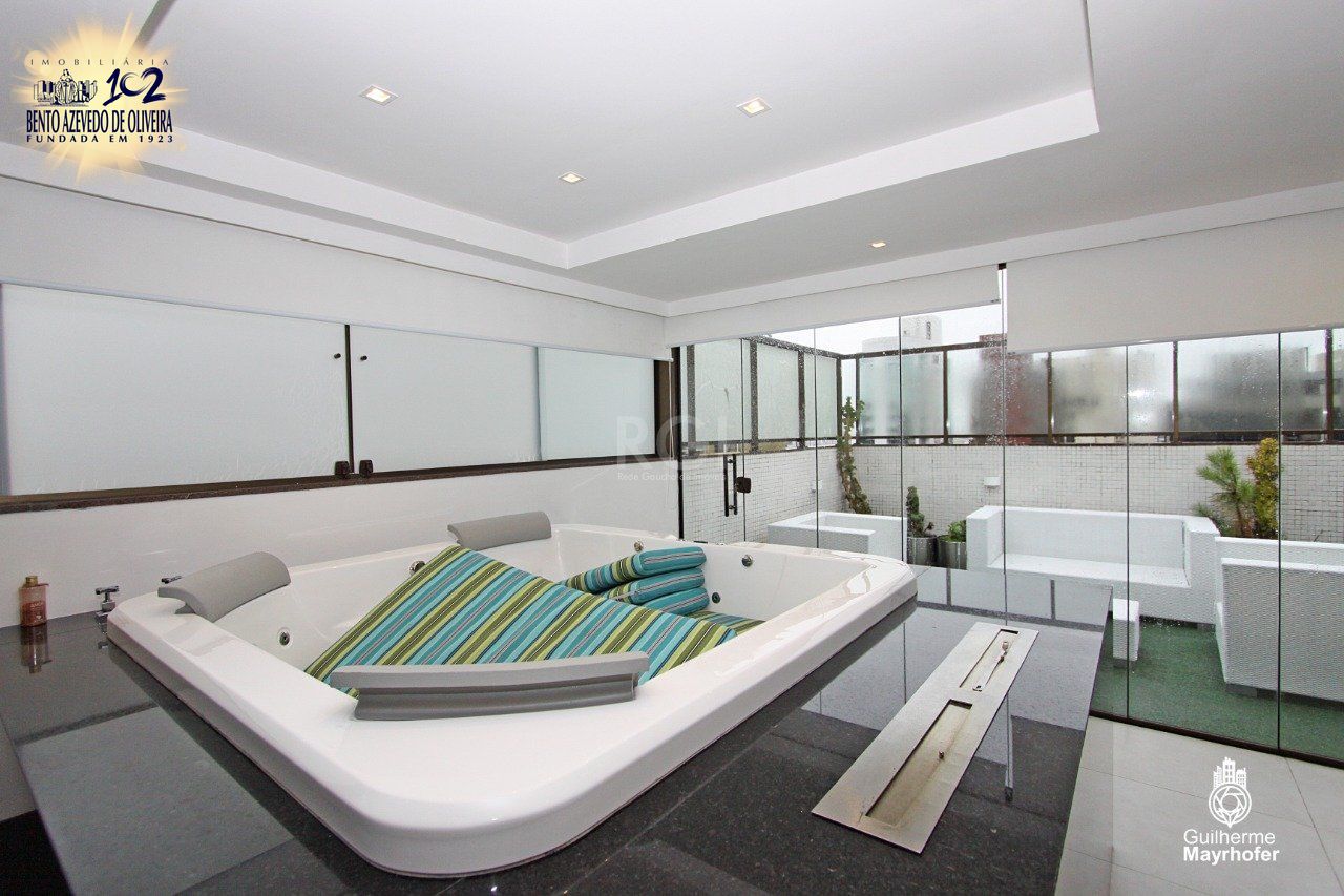 Cobertura de três (3) dormitórios, três (3) suítes, com cinco (5) vagas de garagens no bairro Petrópolis em Porto alegre. Cobertura mobiliada e totalmente reformada com fechamento de 4 sacadas, junto ao Grêmio Náutico União, com três (3) dormitórios, sendo três (3) suítes com piso aquecido nos banheiros, living amplo no primeiro andar com gabinete interligado ao living, copa cozinha e lareira. Na parte superior, living amplo com ilha gourmet, parrilha e churrasqueira , contando também com estar com jacuzzi, solarium com vista panorâmica e academia particular. Projeto de móveis e decoração de alto padrão, com cinco (5) vagas de garagens, lado a lado e cobertas, elevador codificado e portaria virtual, com baixo custo condominial, devido a portaria virtual. Próxima aos colégios, Anchieta, Farroupilha, e todos os recursos do bairro. Agende uma visita com corretora autorizada.
