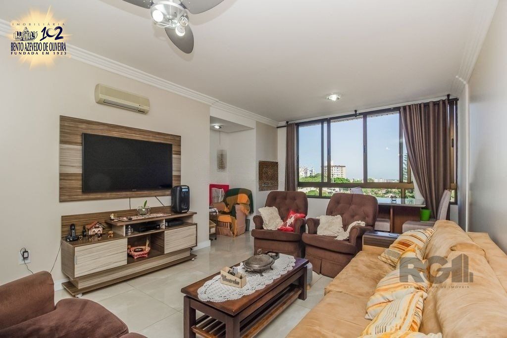 Excelente apartamento 3 dorm. com 107,1 m² privativos, com vista para o aeroporto e arena do Grêmio, amplo living com churrasqueira, Duas vagas de garagem escrituradas com depósito individual fechado. Infraestrutura com brinquedoteca, elevador, espaço gourmet, fitness, espaço para leitura, piscina adulto e infantil aquecidas, playground, portaria, porteiro eletrônico e salão de festas.