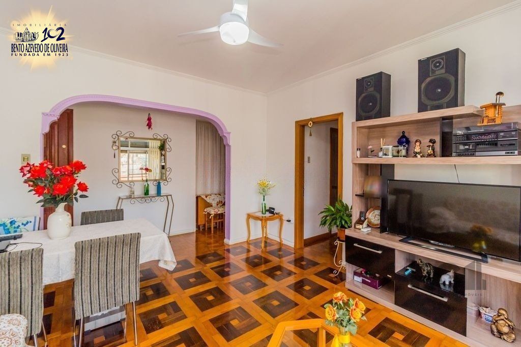 Apartamento 3 dormitórios, living aconchegante para dois ambientes com sacada totalmente fechada com vidros corrediços, 8º andar, de frente, posição solar norte, piso em parquet Decorado, aberturas novas em madeira, todo reformado, cozinha e área de serviço separada, banheiro social , banheiro auxiliar, ficam armários fixos dos dormitórios e vidros anti ruídos. Excelente opção de moradia no Centro da Capital.