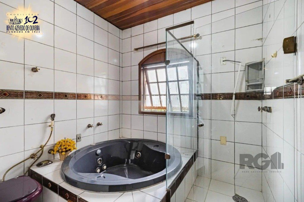 A área externa conta com jardim, piscina e galpão crioulo. Muito iluminada, segura, com grades, cerca elétrica, alarme e garagem fechada para dois carros.