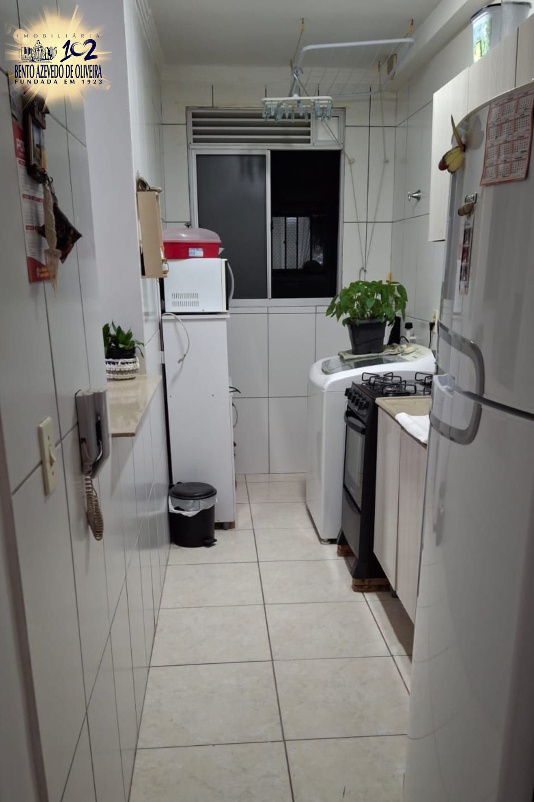 Sala ampla, arejada e iluminada, piso laminado e pequena varanda. Cozinha ampla, ventilada, com ótima luz solar, janelas grandes e revestimento em cerâmica. Área de serviço integrada com a cozinha iluminada e ventilada