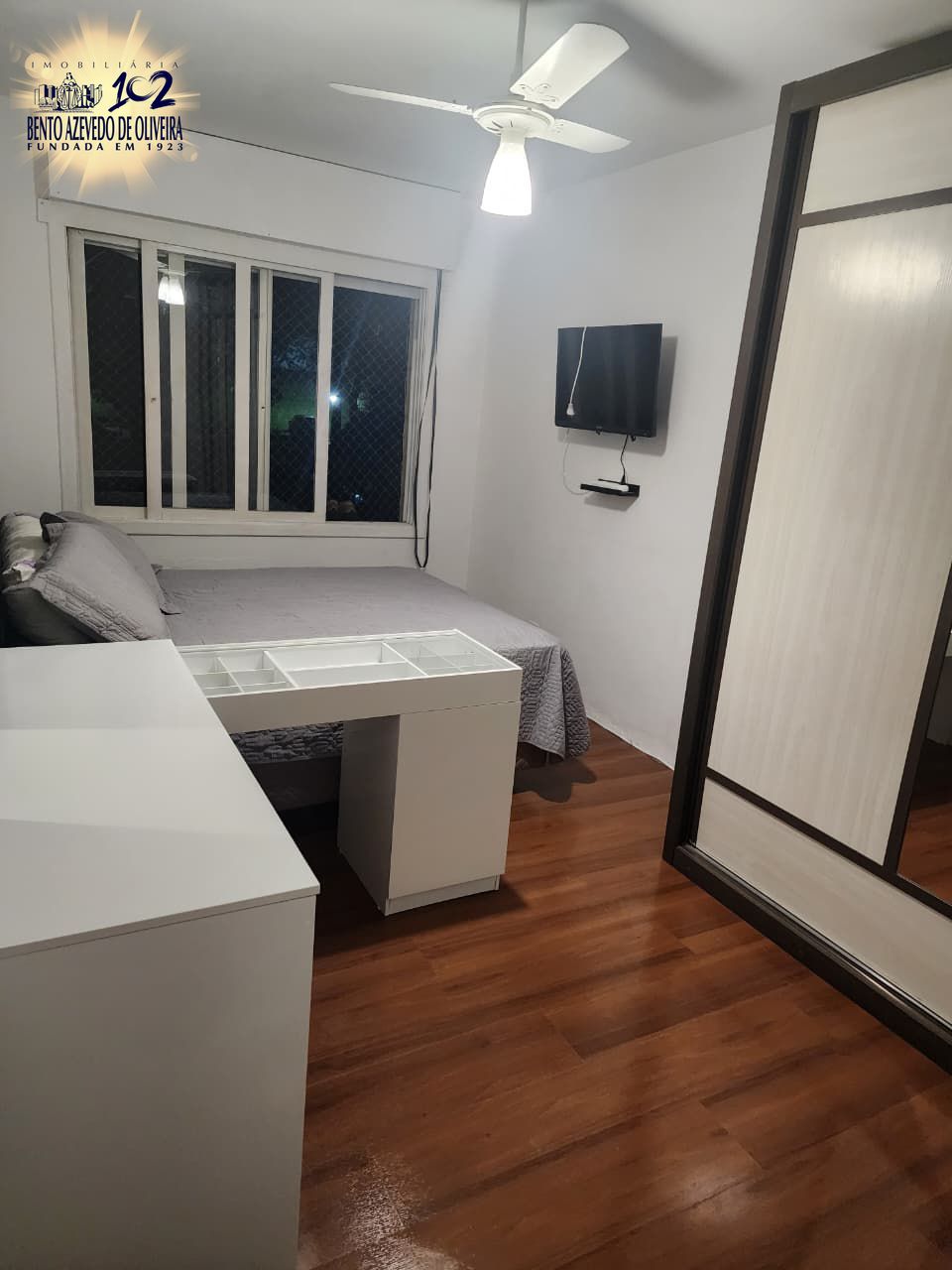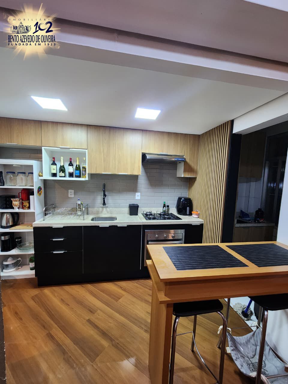 Fica no imóvel cozinha, a bancada e as banquetas, a lavanderia e o guarda-roupas. Imóvel todo com telas.