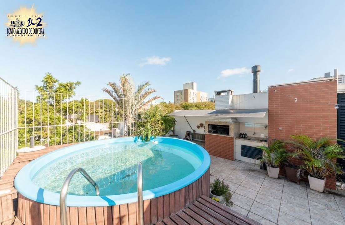 Na parte superior, o imóvel conta com mais um living para dois ambientes, espaço que pode ser utilizado como gabinete ou 4º dormitório, além de um amplo terraço com piscina privativa e churrasqueira, ideal para momentos de lazer e confraternização. A cobertura ainda possui placas solares, sistema de cisternas e excelente ventilação e iluminação natural.