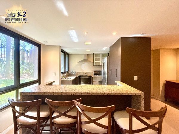 Apartamento mobiliado com 107 m² privativos, composto por 3 quartos, sendo 1 suíte, além de lavabo e banheiro social, oferecendo conforto e praticidade para toda a família. Todos os dormitórios são bem ensolarados, com piso laminado e ar-condicionado split instalado.