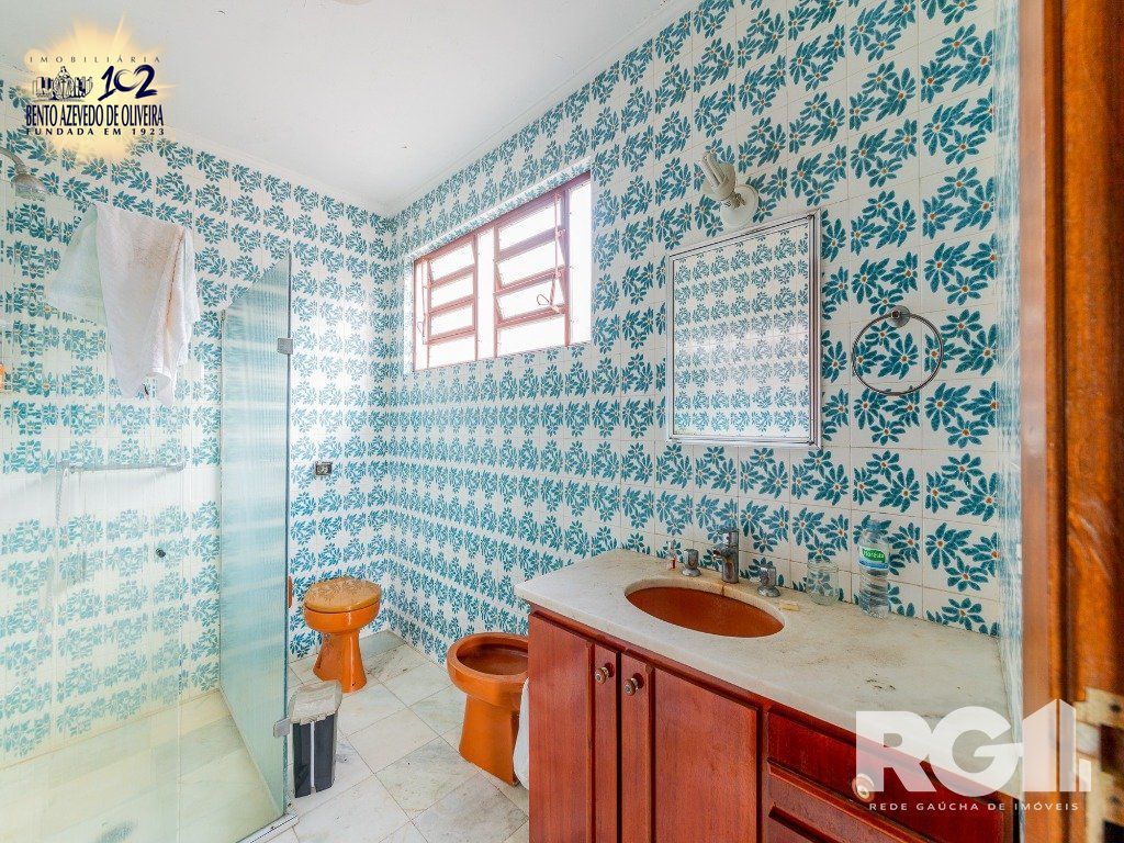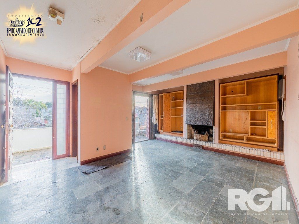 Ao adentrarmos no pavimento superior, conferimos uma residência bem iluminada, com amplo living, uma lareira, lavabo e gabinete. temos a sensação da casa ser de um nível só, porém elevada em relação a rua. Em seguida, temos sala de jantar, jardim de inverno, cozinha, 3 amplos dormitórios e uma suíte.