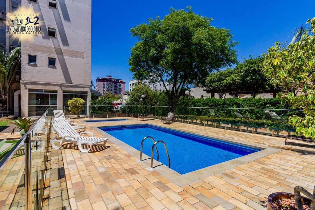 Portaria com segurança 24 horas, elevador, piscina, playground e salão de festas decorado.