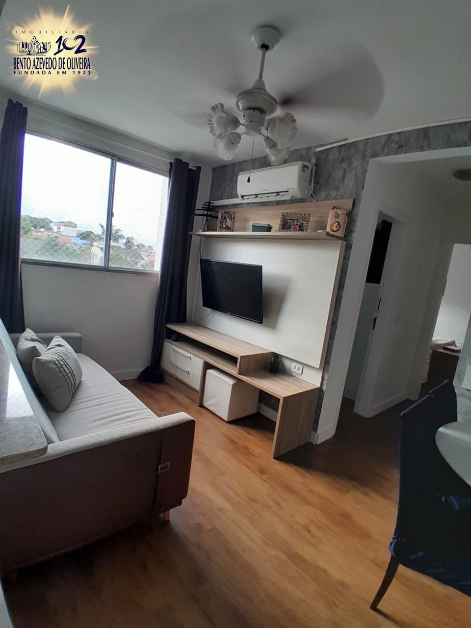 Sala em 2 ambientes, cozinha americana e área de serviço com ventilação natural. 2 dormitórios com privacidade. No terceiro andar(elevador), com linda vista e excelente posição solar. Ficaria a cozinha planejada,