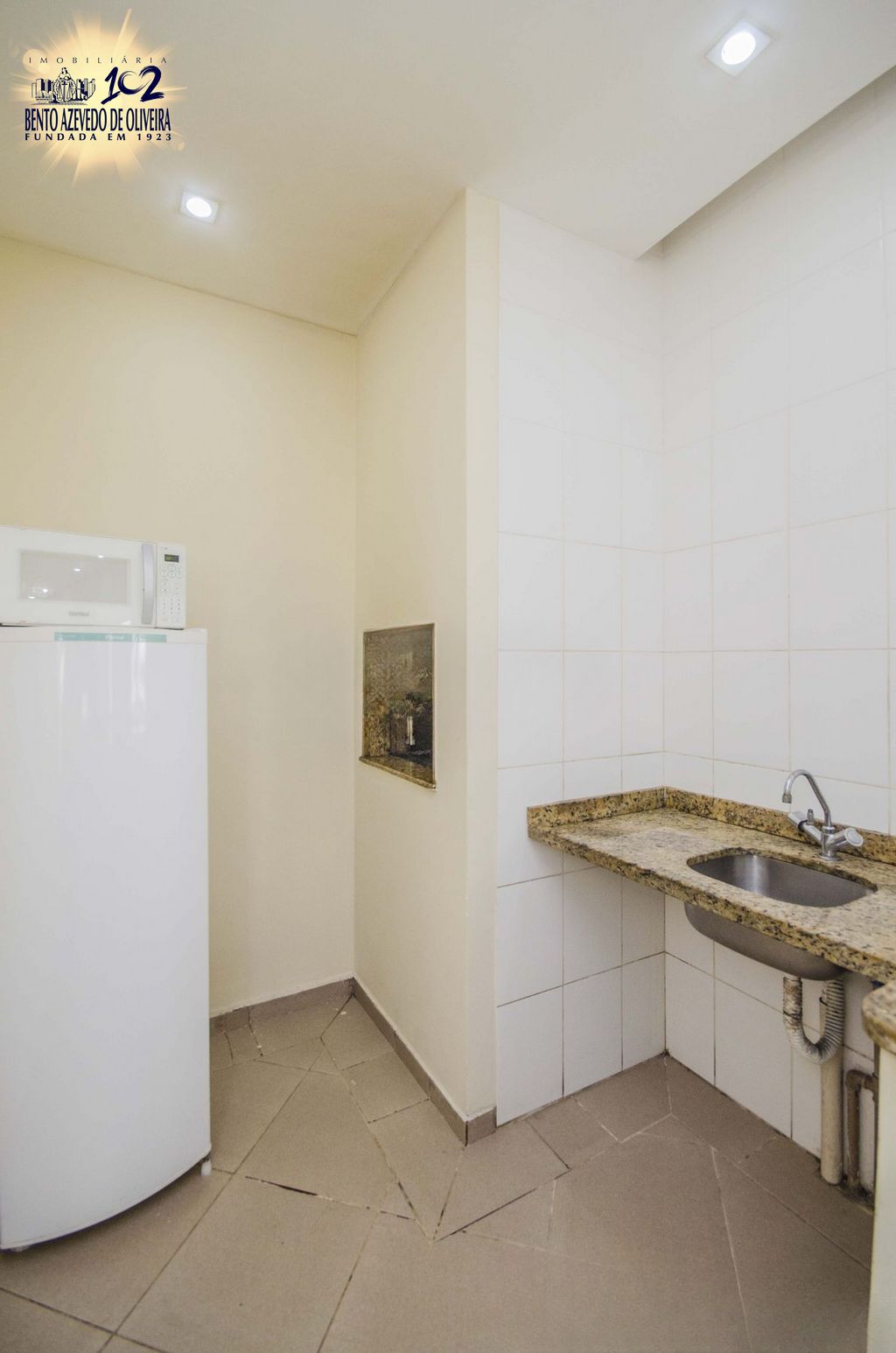 Área de serviço integrada à cozinha, ventilada e iluminada.