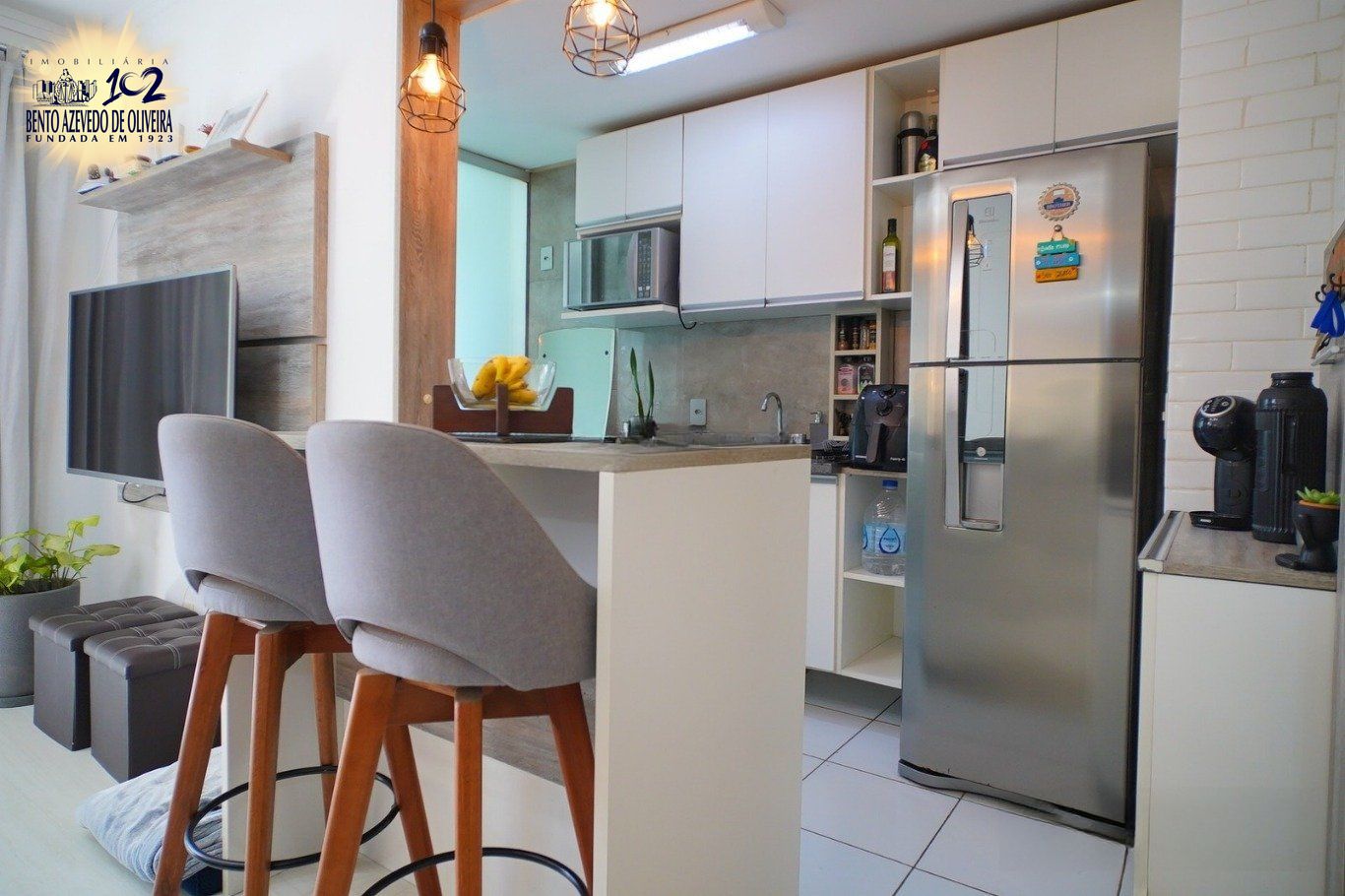 A área social apresenta sala estendida, ampliando a integração e a sensação de espaço. O imóvel conta com móveis planejados sob medida, que permanecem no apartamento, oferecendo praticidade e valorização ao conjunto.
