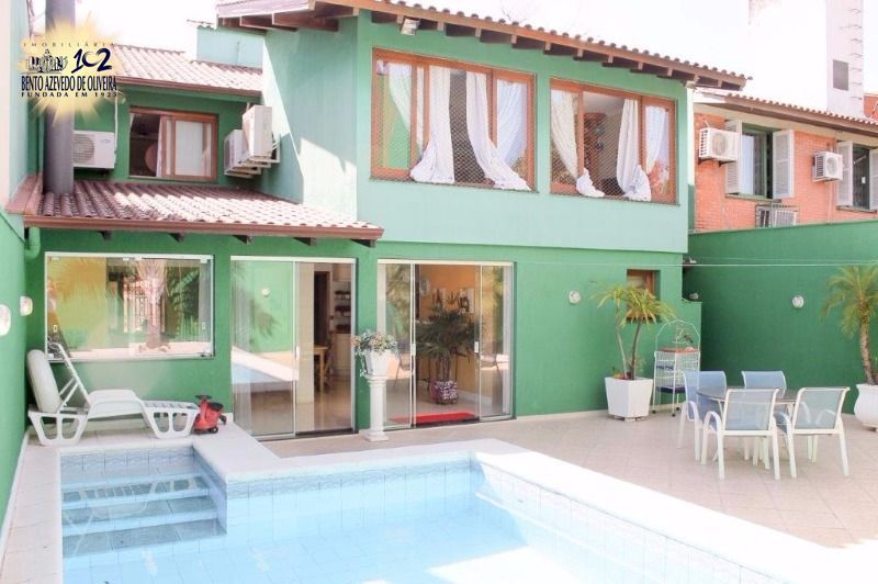 excelente casa individual, com 4 dormitórios sendo 1 suíte com amplo banheiro e uma linda jacuzzi, um dos dormitórios de solteiro com sacada frontal. Hall de entrada, lavabo, living dois ambientes com lareira, copa cozinha que fica integrada com ambiente de churrasqueira, sala de jantar e salão de jogos.