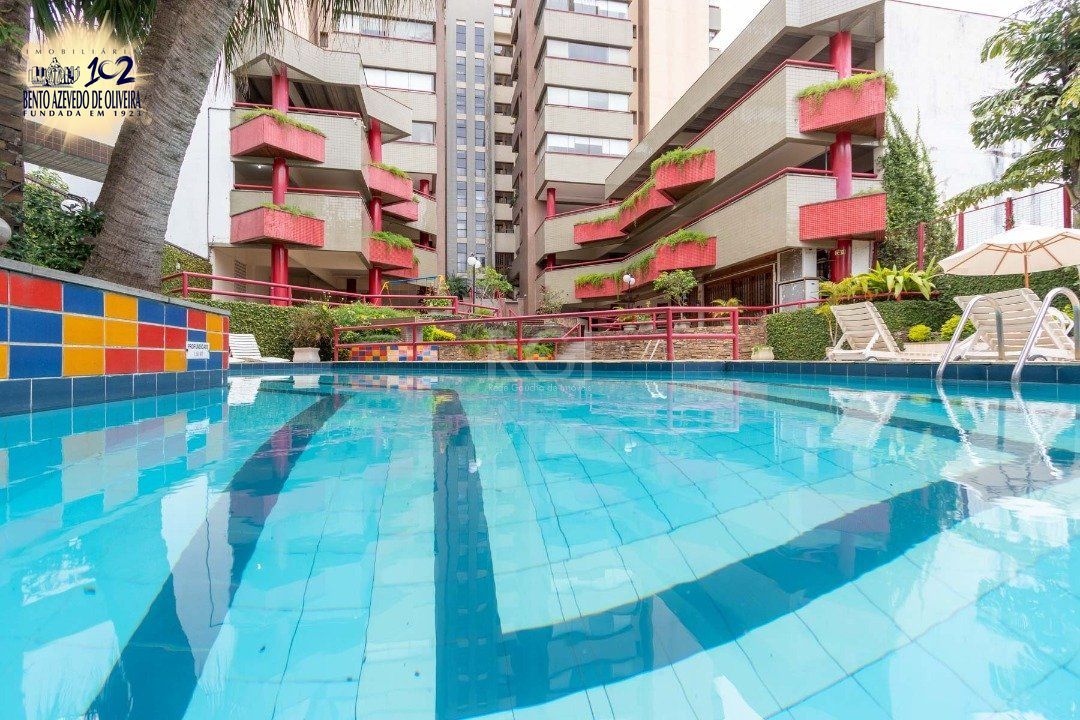 Cobertura 4 dormitórios suite c/ hidro, closet em 1 dorm, living c/ 3 ambientes, c/lareira, sacada , hall, lavabo, estar íntimo, sala de jantar, 1 banheiro social, copa e cozinha, dependência de empregada, wc auxiliar, área serviço, - 3 vagas de garagem , cobertura : churrasqueira., cozinha, bar, banheiro, c/piscina, - edificio sobre pilotis, em otimo estado de conservação, c/ gás central, jardim, gradil, piscina, playground, fitness center, salão de festas, portaria 24h, - construção em: 1995 - 302 m2 de área privativa andar. Localizado na Rua Barao do Guaiba, próximo a comércios e serviços.