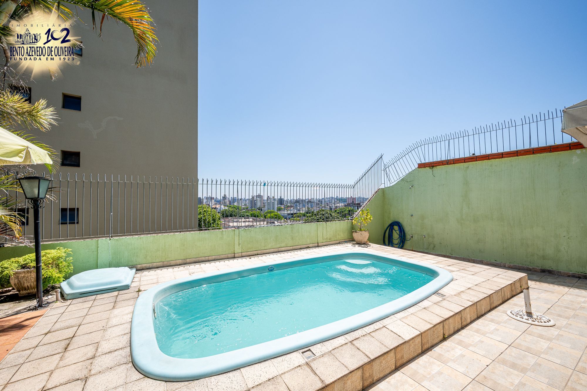 Na parte inferior, há uma área de lazer completa, com piscina, churrasqueira, banheiro de apoio, sala adicional, além de lavanderia ampla e depósito.