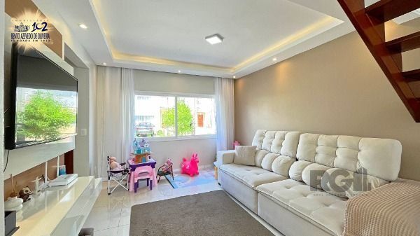 Casa em condomínio com 3 dormitórios, suíte, banheiro social, Living dois ambiente, lavabo, área de serviço e pátio. Teto de todas as peças em gesso. Condomínio com portaria 24h, quadra de esporte, quiosque com churrasqueira. Agende sua visita!