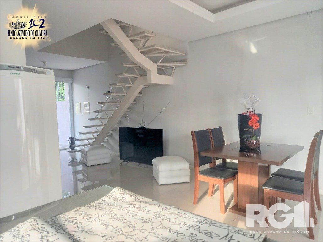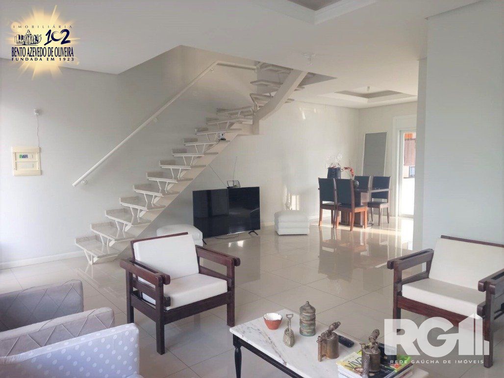 3 dormitórios sendo 1 suite com closet, terraço nos fundos e amplo sacadão na frente. cozinha em conceito aberto integrada a sala de jantar, living amplo com lareira, banheiro social, lavabo, varanda aberta com churrasqueira, lavanderia e amplo pátio com garagem para 10 carros. Cortinas persianas elétricas, vidros de 8mm, 110/220v, janelas de PVC, alarme e cerca elétrica. Possibilidade de ampliação nos fundos do terreno.