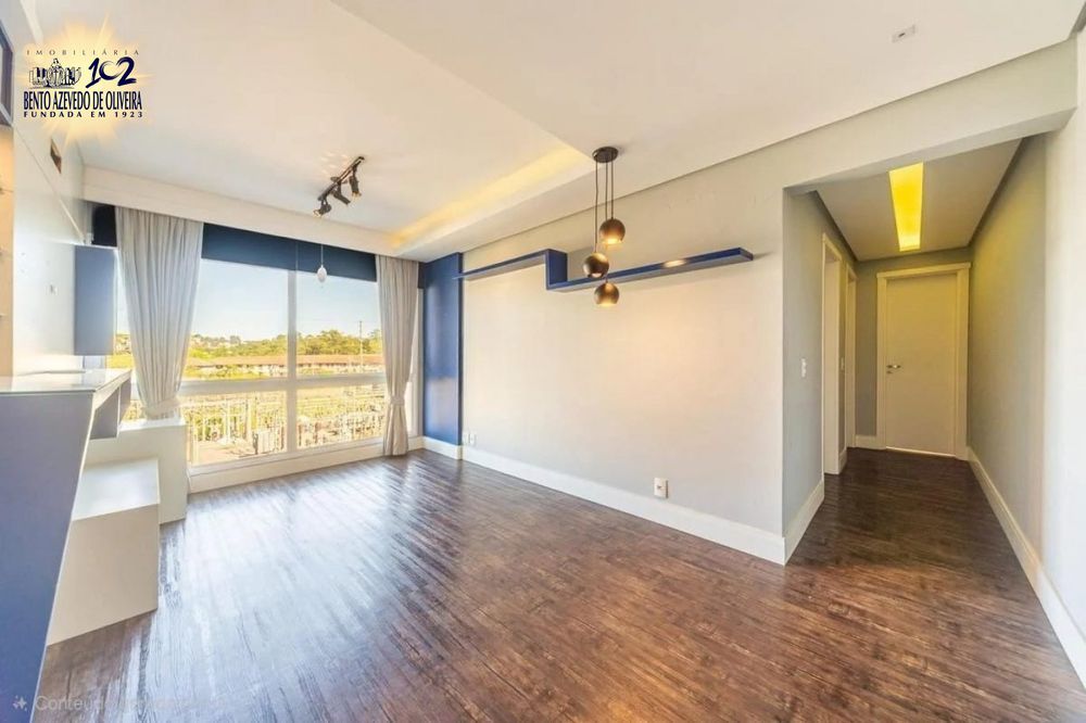 Apartamento à venda no bairro Passo da Areia, em Porto Alegre, com 63 m² de área privativa. Possui 2 dormitórios, sendo 1 suíte com armário, living para 2 ambientes, cozinha americana equipada com pia, armários e churrasqueira, área de serviço com tanque e banheiro social com box de vidro.