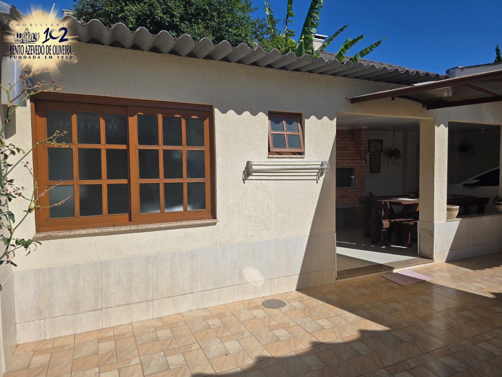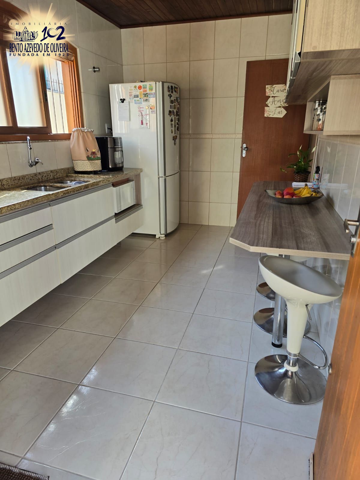 espaço Gourmet: Área nos fundos protegida por cobertura em policarbonato, contando com churrasqueira e mobiliário em madeira maciça (mesa, bancos e cadeiras). Possui banheiro auxiliar e lavanderia completa com máquina Brastemp.