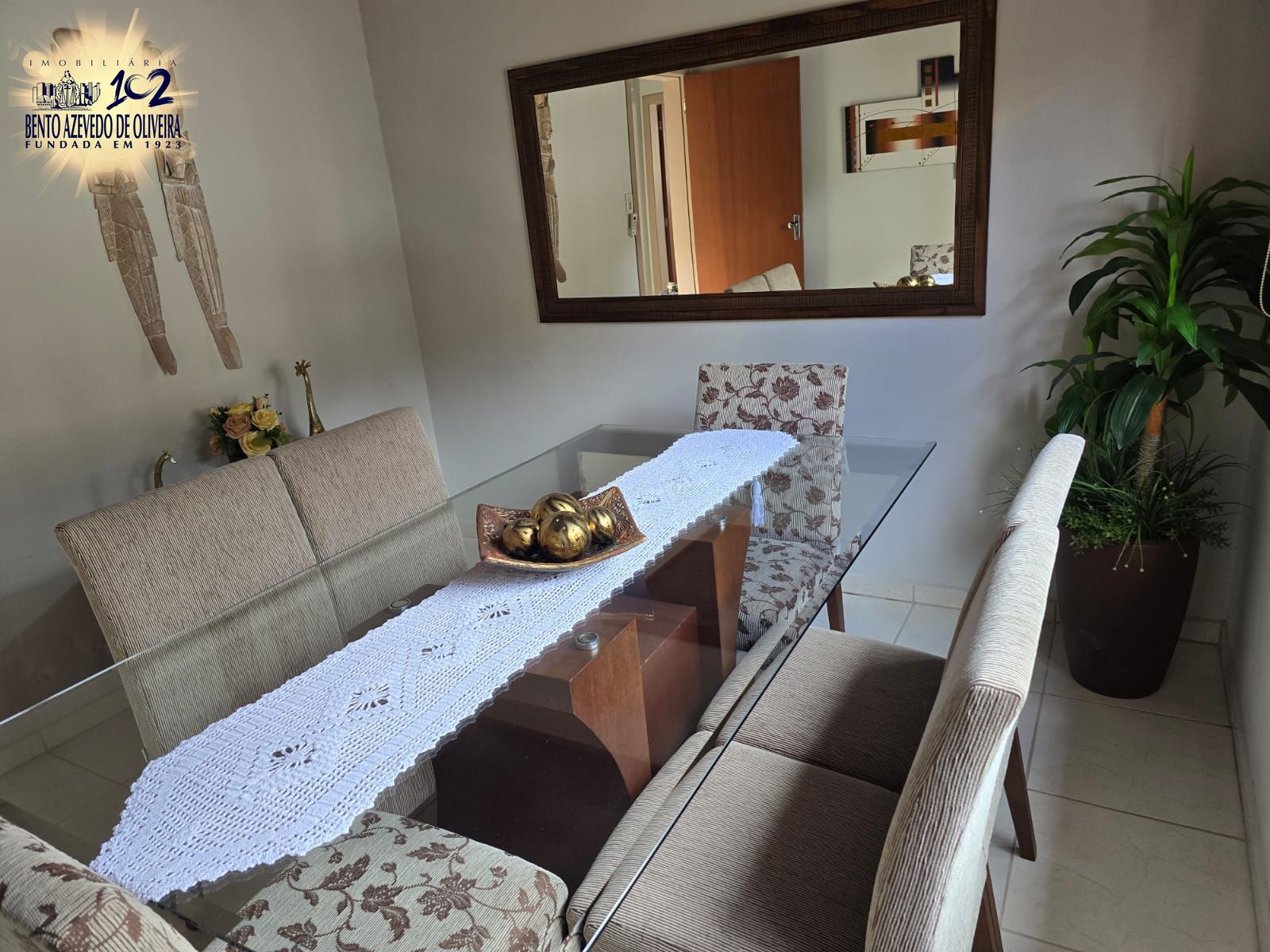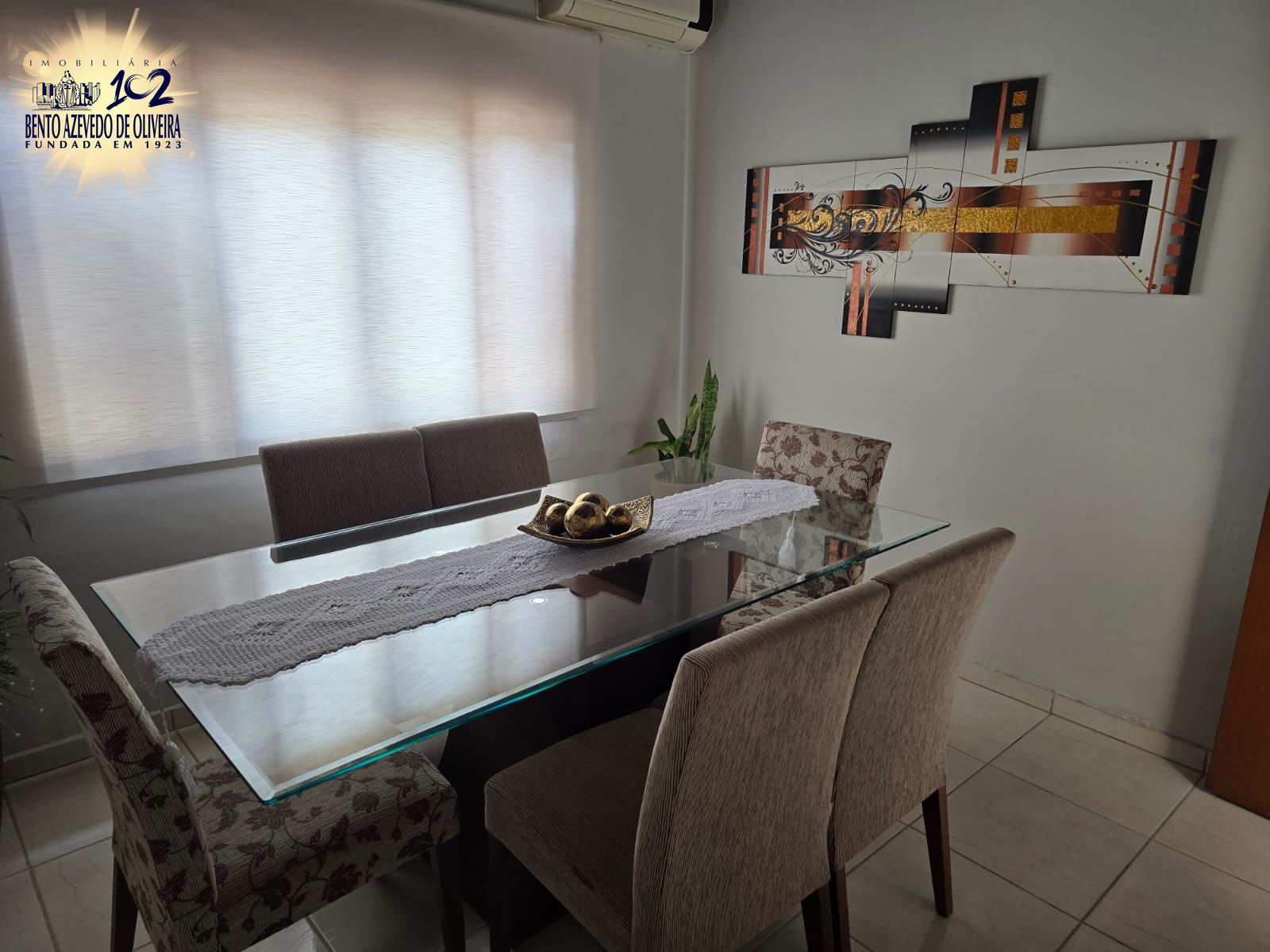 Dormitórios Versáteis: Possui 2 dormitórios com amplos closets projetados, armários embutidos e cabeceiras fixas. O 3º dormitório está configurado como uma sofisticada sala de jantar (reversível), equipada com mesa de vidro Blindex e 6 cadeiras estofadas. Todos os quartos possuem ar-condicionado Split instalado.