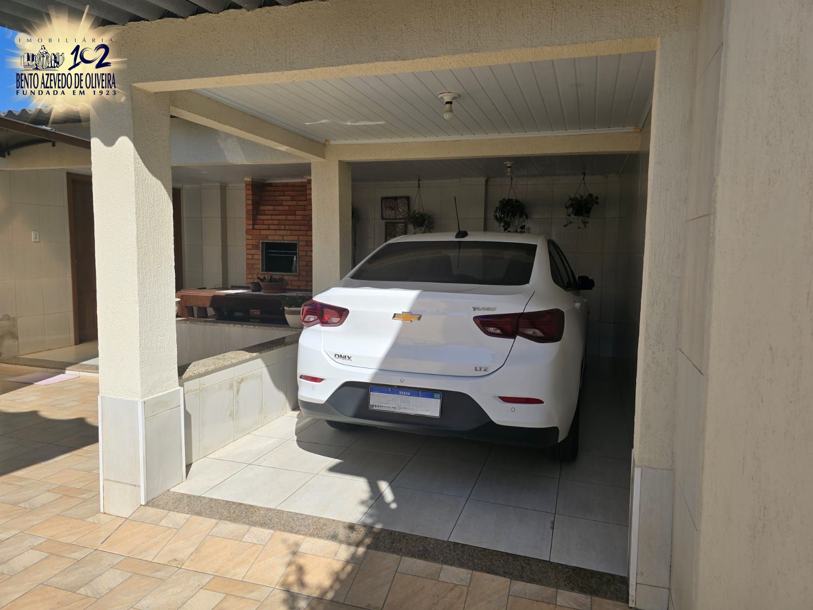 Garagem coberta para 1 veículo, com espaço descoberto para até 3 carros adicionais.