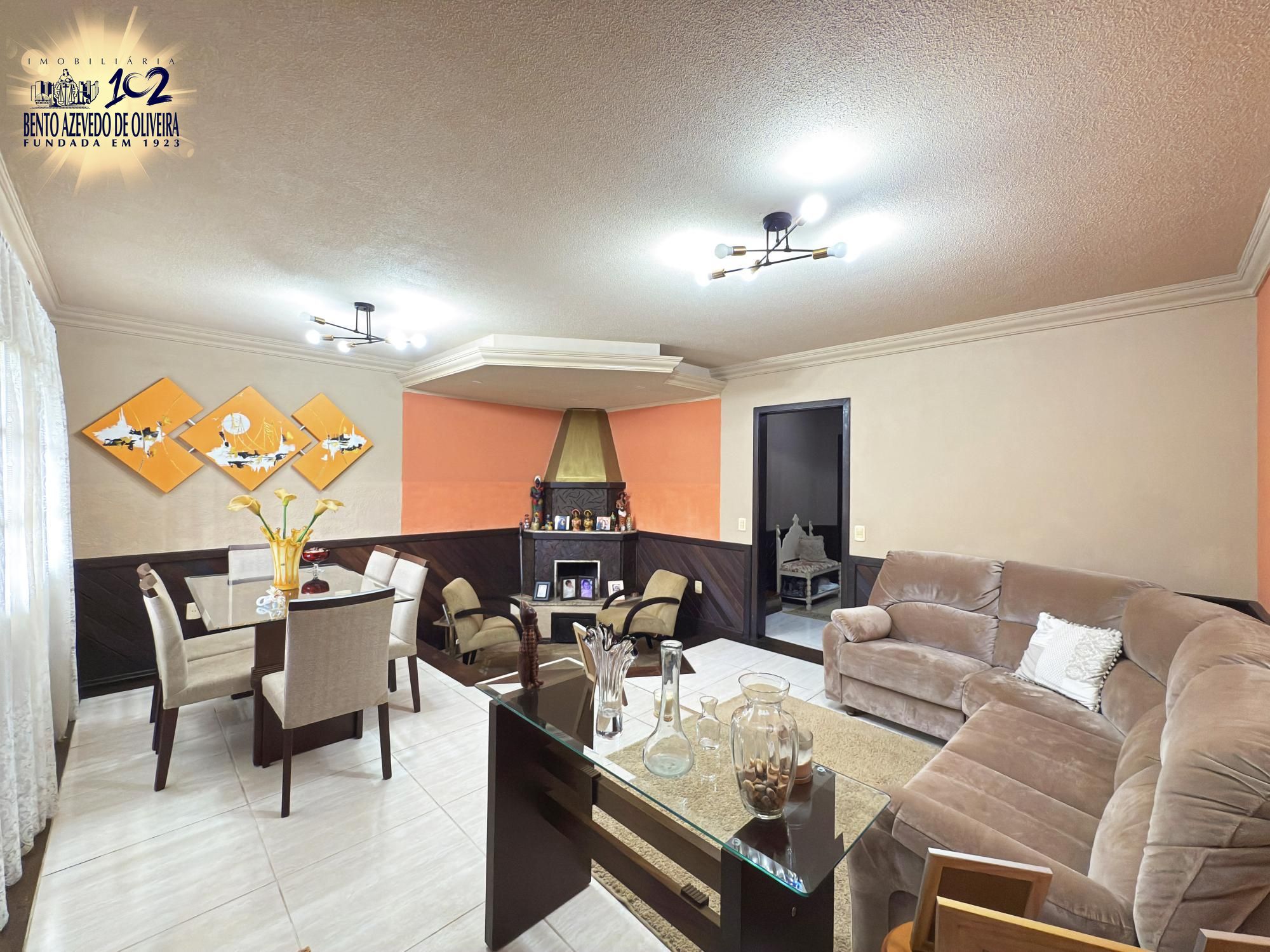 Ótimo sobrado com 255 m², todas peças amplas, 3 dormitórios, living 2 ambientes com lareira, gabinete no andar térrea (opção 4 dormitório), 2 banheiros sociais, amplo sótão, copa-cozinha, dispensa, área de serviço, espaço gourmet com churrasqueira, pequeno pátio com árvores frutíferas, garagem para dois carros cobertos e um descoberto.