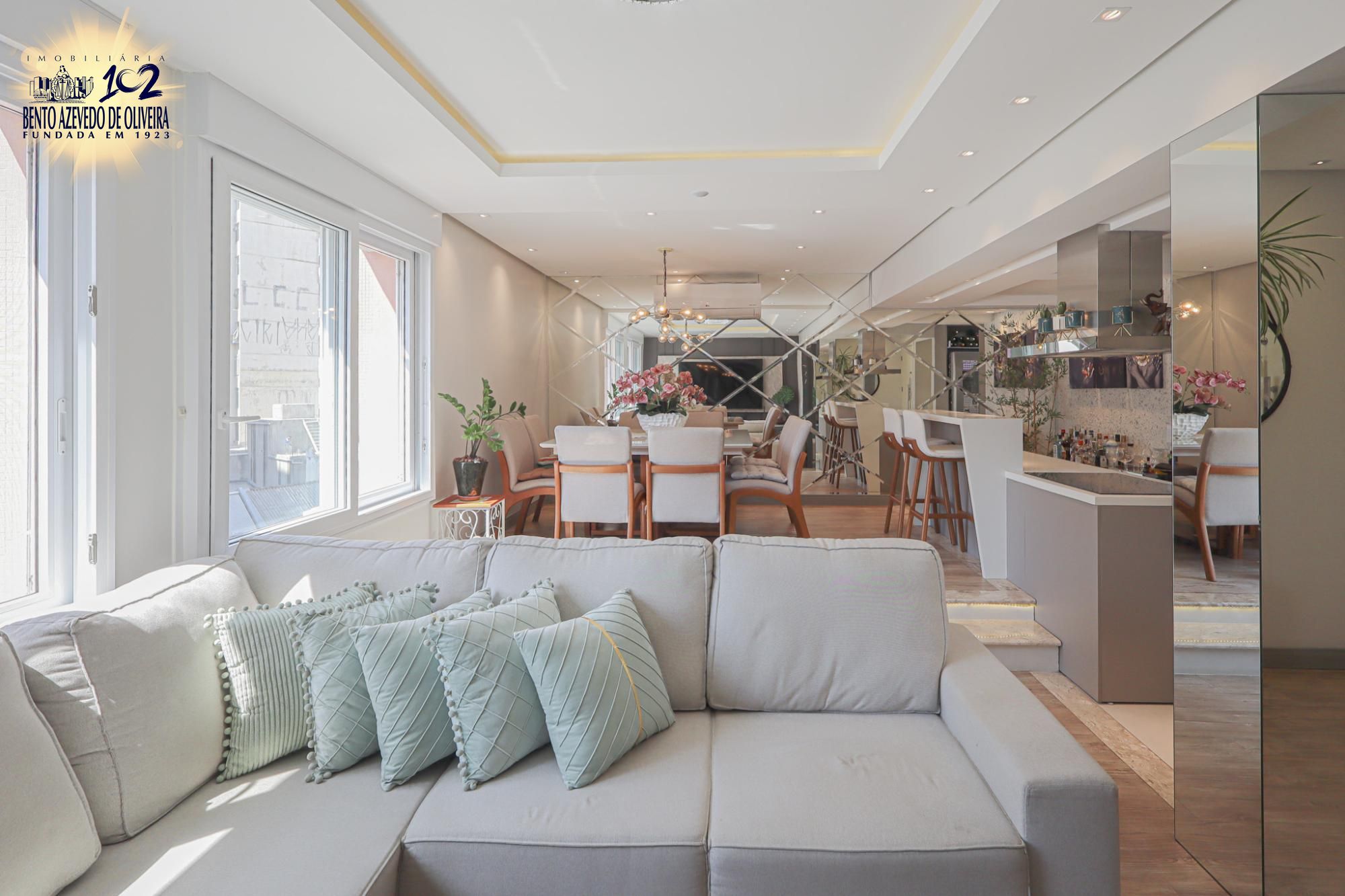 Apartamento espetacular em andar alto, reformado e totalmente mobiliado com 125 m² de área privativa com 3 dormitórios sendo 1 suíte com closet, banheiro social com ventilação natural, living para 3 ambientes com janelas amplas proporcionando ótima luminosidade e ventilação. O destaque fica para a cozinha integrada ao living com ilha gourmet proporcionando ótimos momentos de convivência. A área de serviço é individual e conta com churrasqueira. Possui 1 vaga de garagem coberta e escriturada.