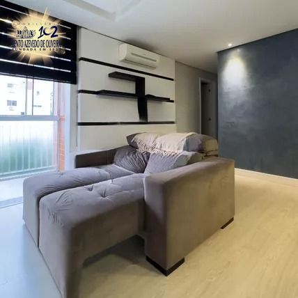Apartamento com 3 dormitórios, suíte, sacada e churrasqueira, mobiliado incluindo geladeira e fogão, ar condicionado, condomínio com infraestrutura de playground, elevador e portaria 24h.