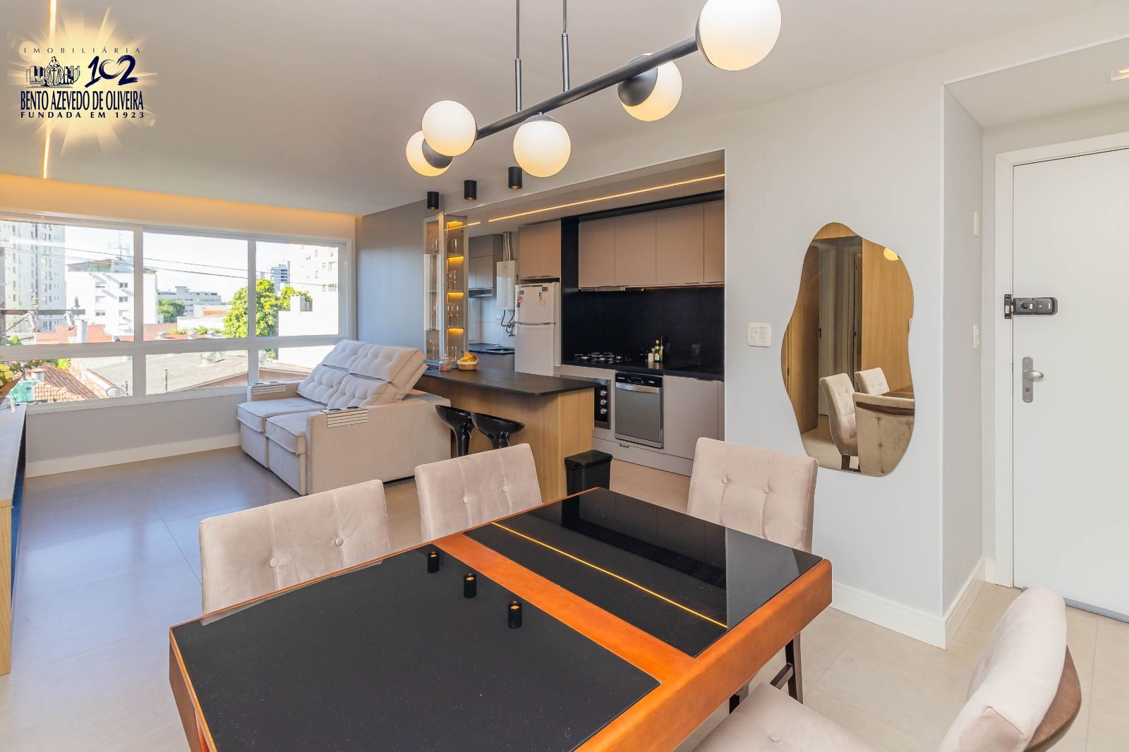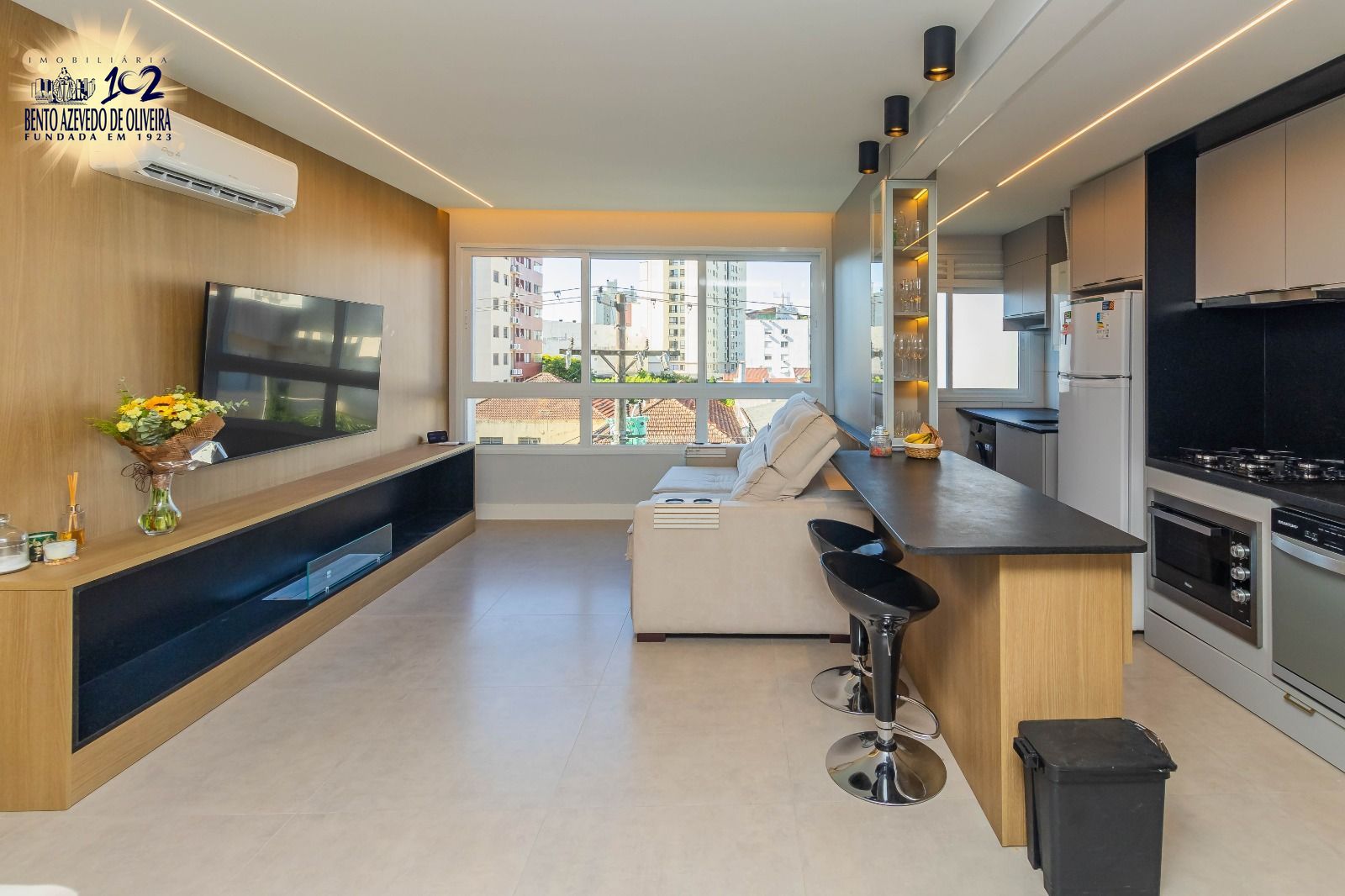 Este lindo imóvel foi recém-reformado com materiais de altíssimo padrão e conta com móveis planejados novos, pensados para oferecer conforto e funcionalidade em cada ambiente. Localizado no 4º andar, possui dois dormitórios, sendo uma suíte, dois banheiros, sala de estar integrada à cozinha em um moderno conceito aberto, lavanderia e uma charmosa churrasqueira privativa, ideal para momentos de lazer.