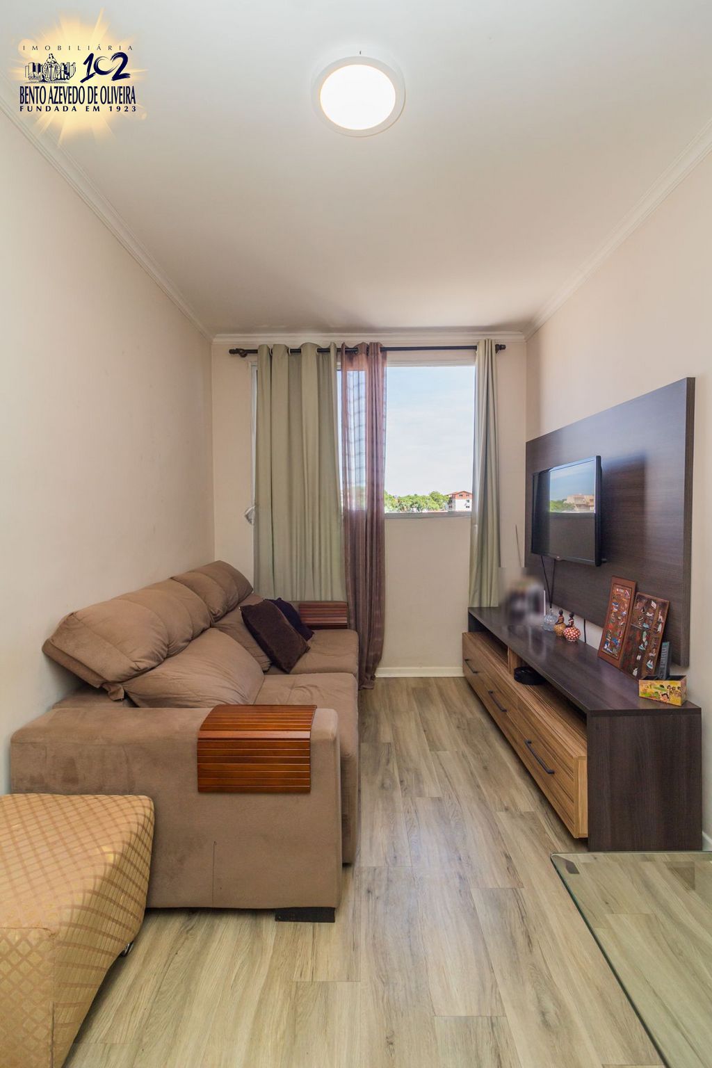 Sala em 2 ambientes, cozinha americana e área de serviço com ventilação natural. 2 dormitórios com privacidade, sendo 1 suíte e banheiro auxiliar.