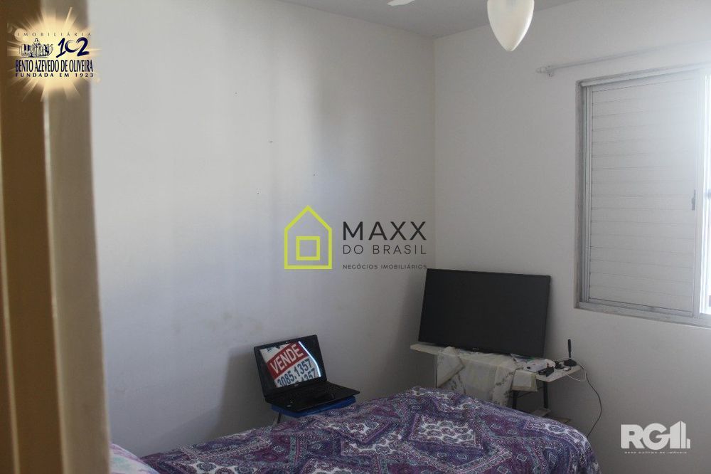 Condomínio Barcelona. Apartamento em bom estado, desocupado, pronto para morar, com sala, dois dormitórios, banheiro social, cozinha com pia e área de serviço, no bairro Rubem Berta, na rua dos Maias. Condomínio fechado, com uma vaga de estacionamento rotativo, além de ótima infra com portaria 24h, 3 salões de festa com churrasqueira, campo de futebol, pracinha e estacionamento. Agende sua visita!!