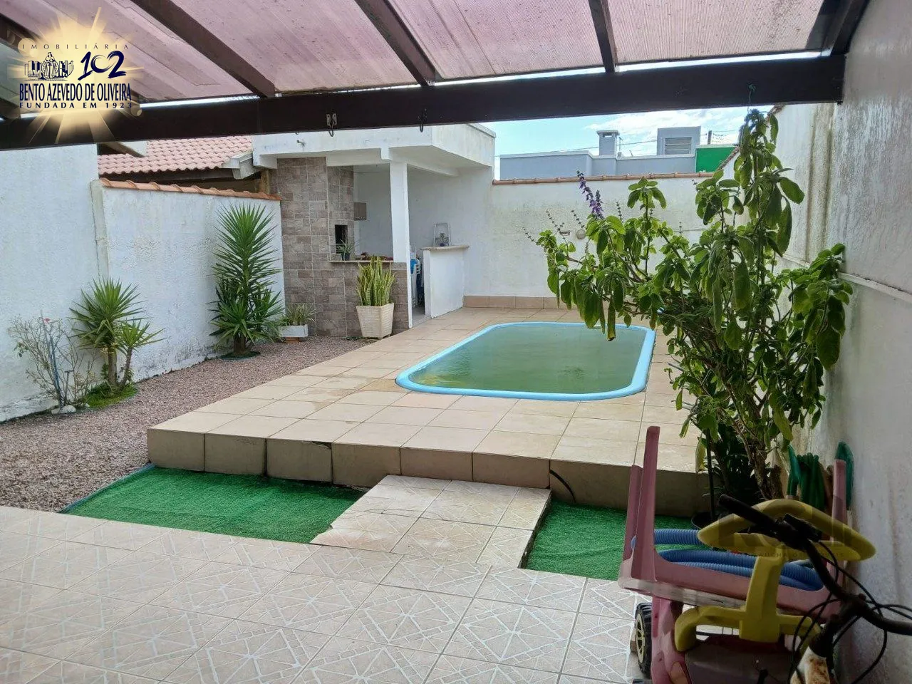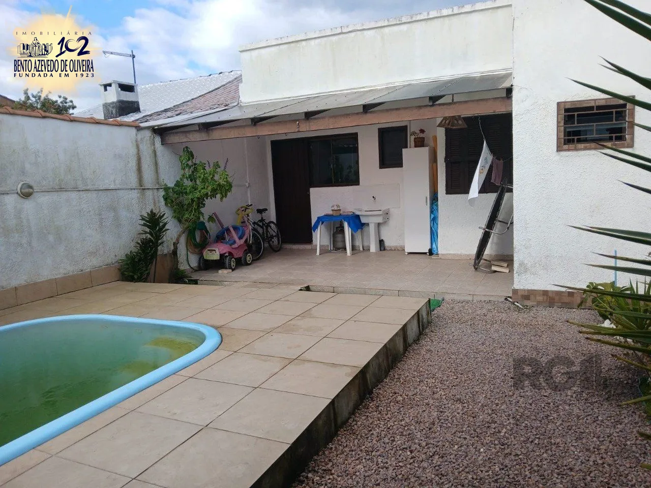 Casa de 2 dormitórios, com banheiro social, e um living em 2 ambientes, com banheiro Social, e cozinha com área de serviço, mais um patio pra 3 carros, e uma piscina nos fundos...