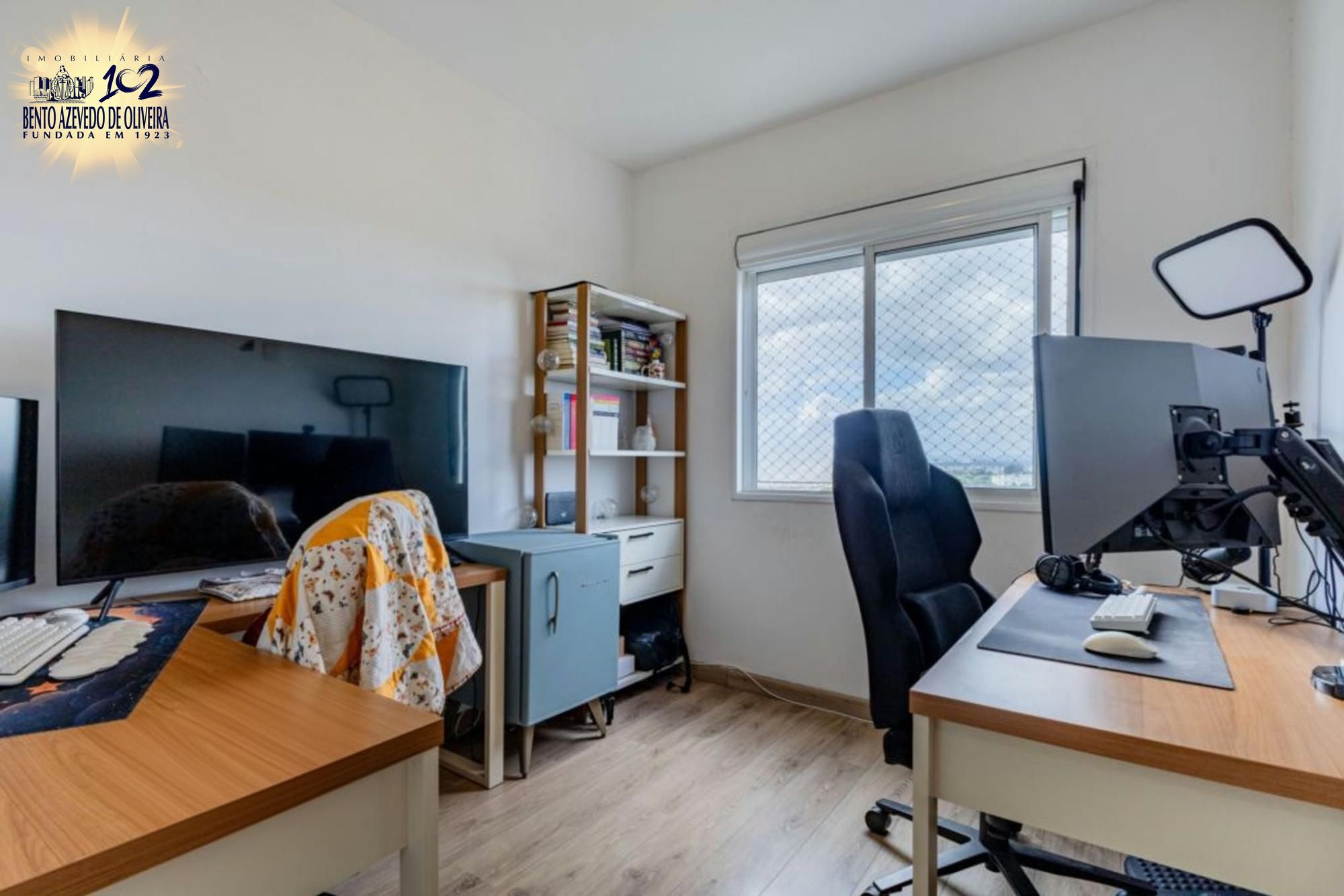 Segundo quarto versátil, com possibilidade de uso como escritório, despensa, biblioteca, espaço para treinos, quarto de visitas, sala de jogos para crianças, home office, área de lazer, área de estudos ou refúgio literário. Terceiro quarto utilizado como closet amplo, ventilado e iluminado. Banheiro auxiliar com móveis sob medida, janelas amplas e acabamento de qualidade.