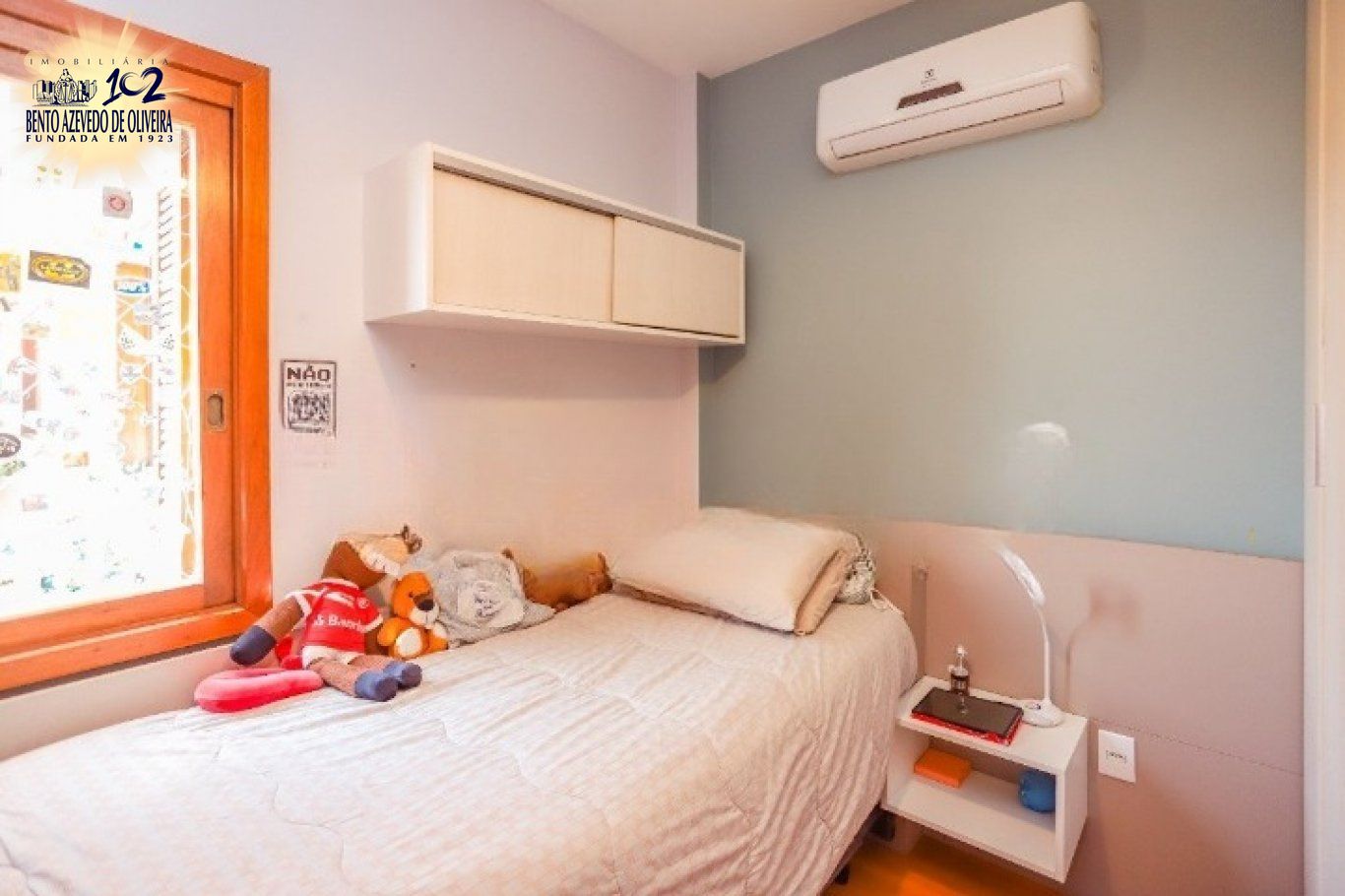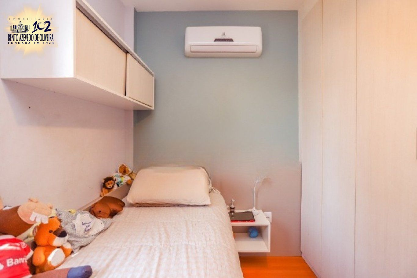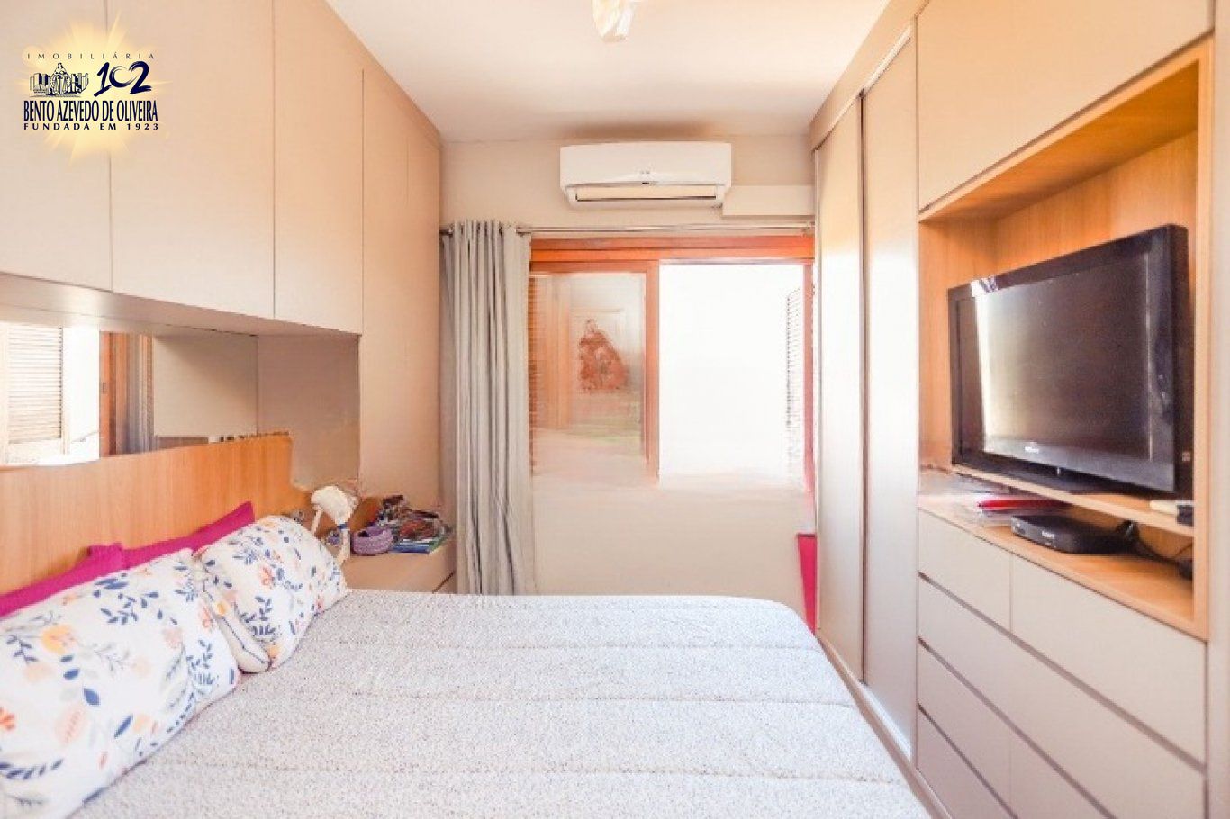 Os dormitórios são confortáveis, bem distribuídos e iluminados, todos com ar-condicionado e piso laminado. A suíte conta com armários planejados, excelente ventilação e banheiro com box de vidro, banheira e janela para o exterior. Os demais quartos são amplos, ventilados e com janelas grandes. O banheiro social possui box de vidro, é todo em cerâmica e conta com janela externa, garantindo ótimo arejamento.