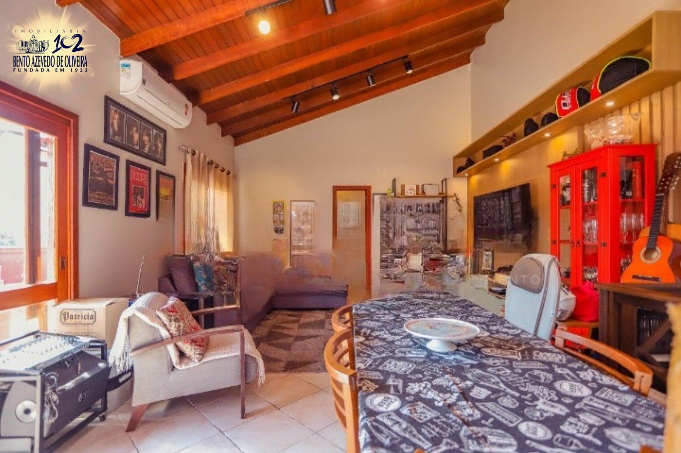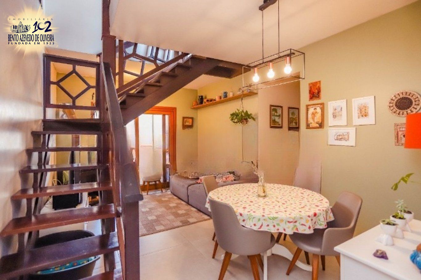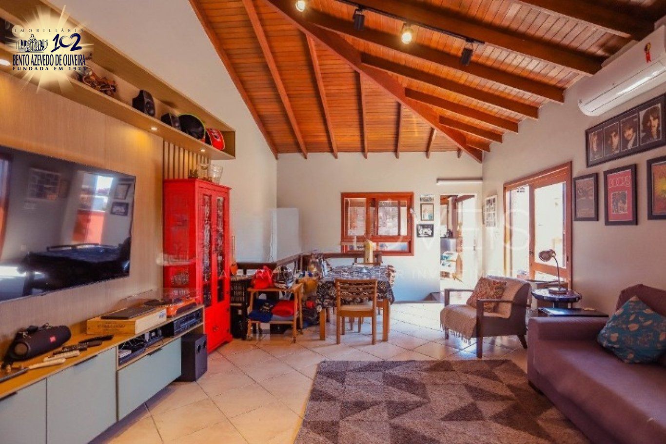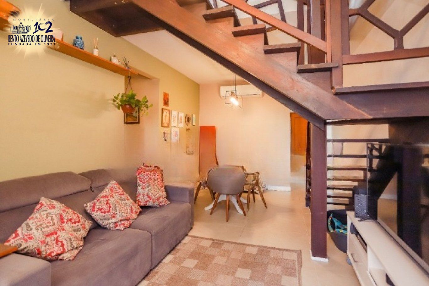 A sala possui dois ambientes, lareira, pequena mesa para refeições e portas que se abrem para a área externa, deixando o espaço muito iluminado e ventilado. Há também um ambiente extra que pode ser utilizado como biblioteca, cantinho de leitura, estúdio criativo, home office, closet, sala de jogos, mini academia, despensa ou dependência de empregada.