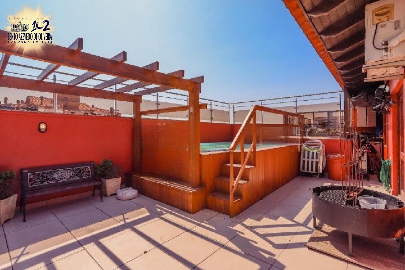 A cobertura conta com um agradável espaço gourmet, com churrasqueira, pequena cozinha, geladeira e ótima ventilação e iluminação, com saída direta para a área da piscina. O imóvel também possui lavabo amplo, totalmente em cerâmica.