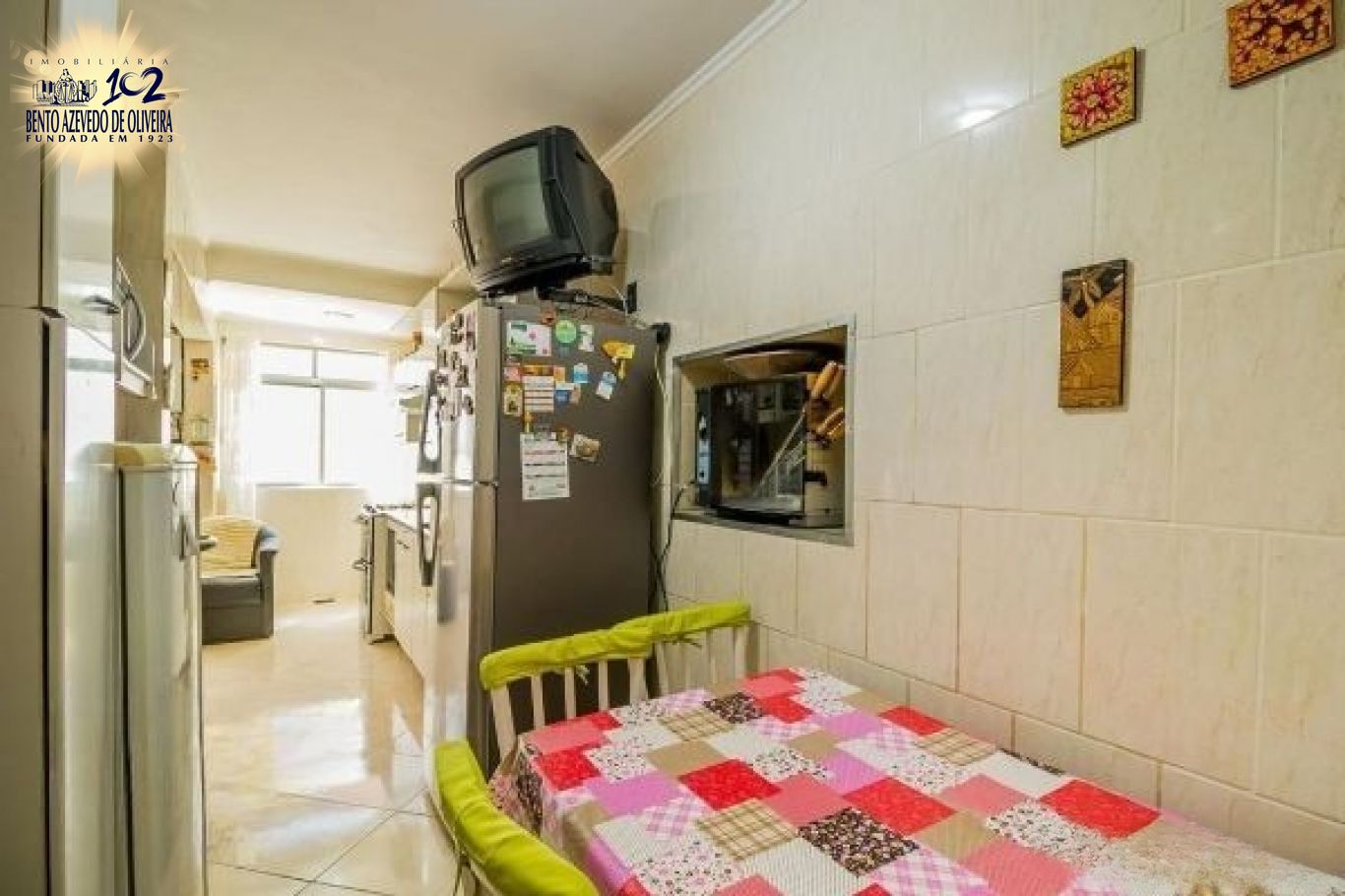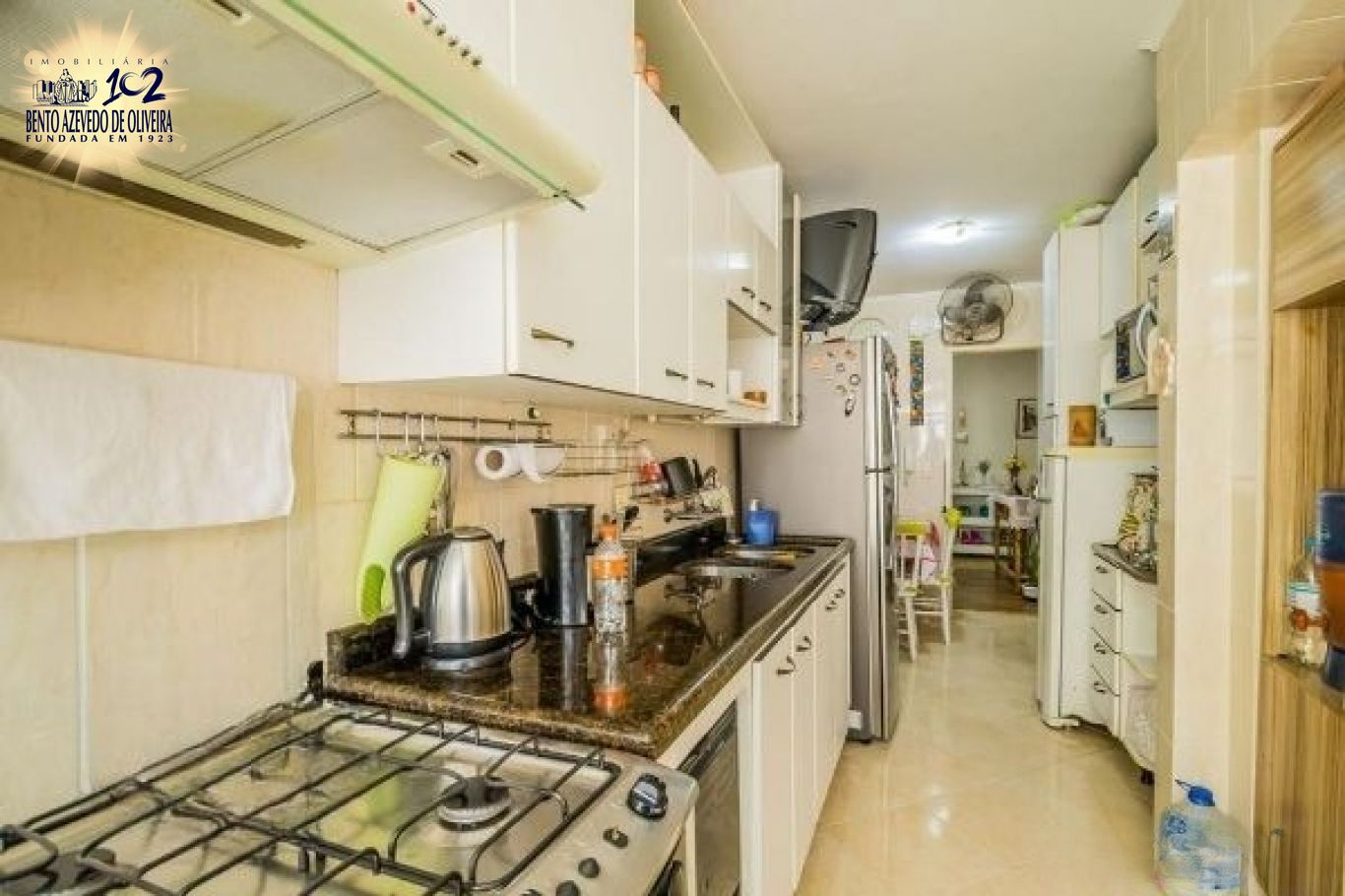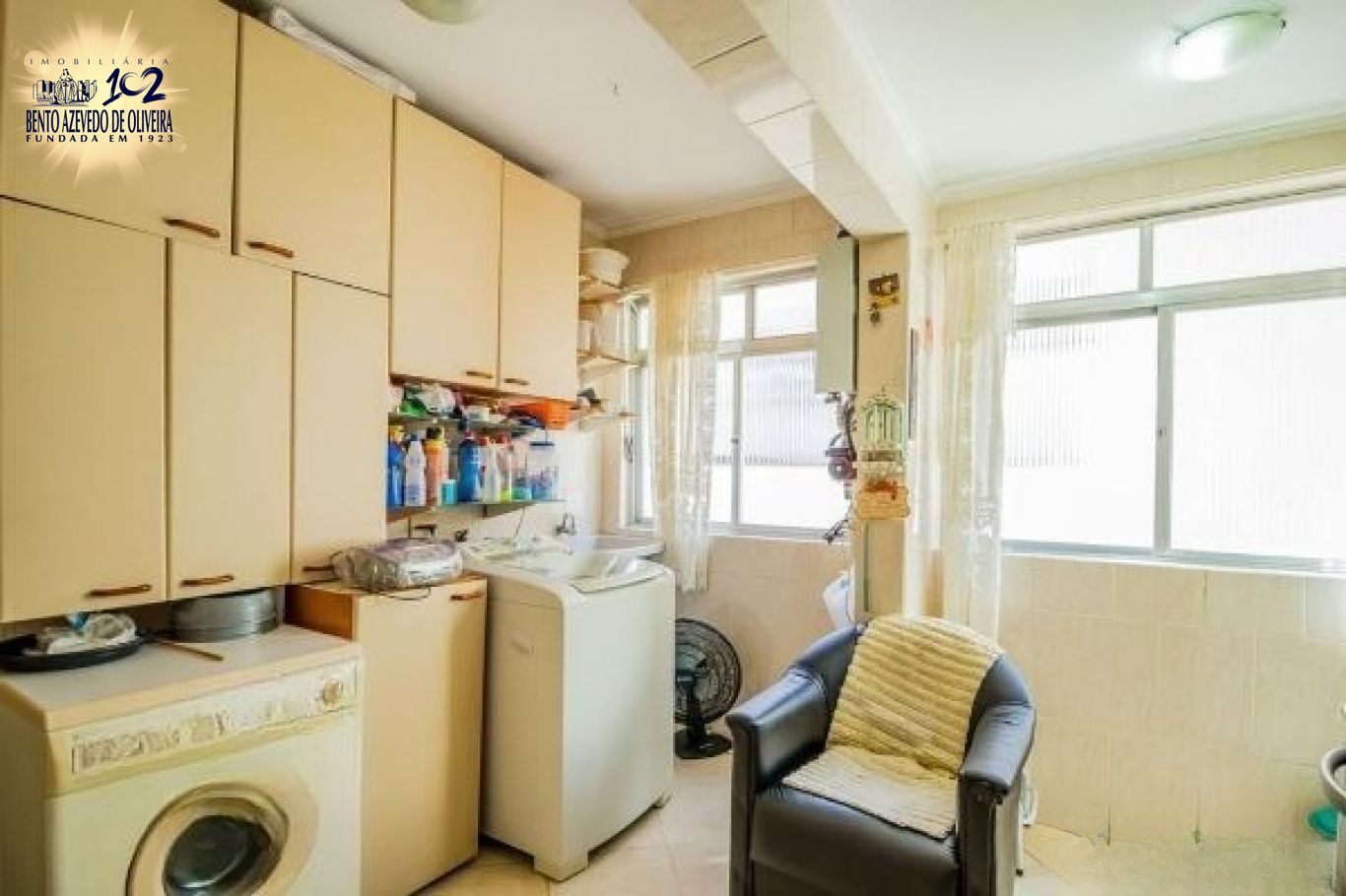 Sala em dois ambientes junto à varanda fechada com vidro temperado, cozinha planejada e ampla área de serviço com ventilação natural. Três banheiros, um com hidro e um lavabo.