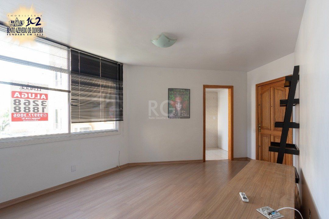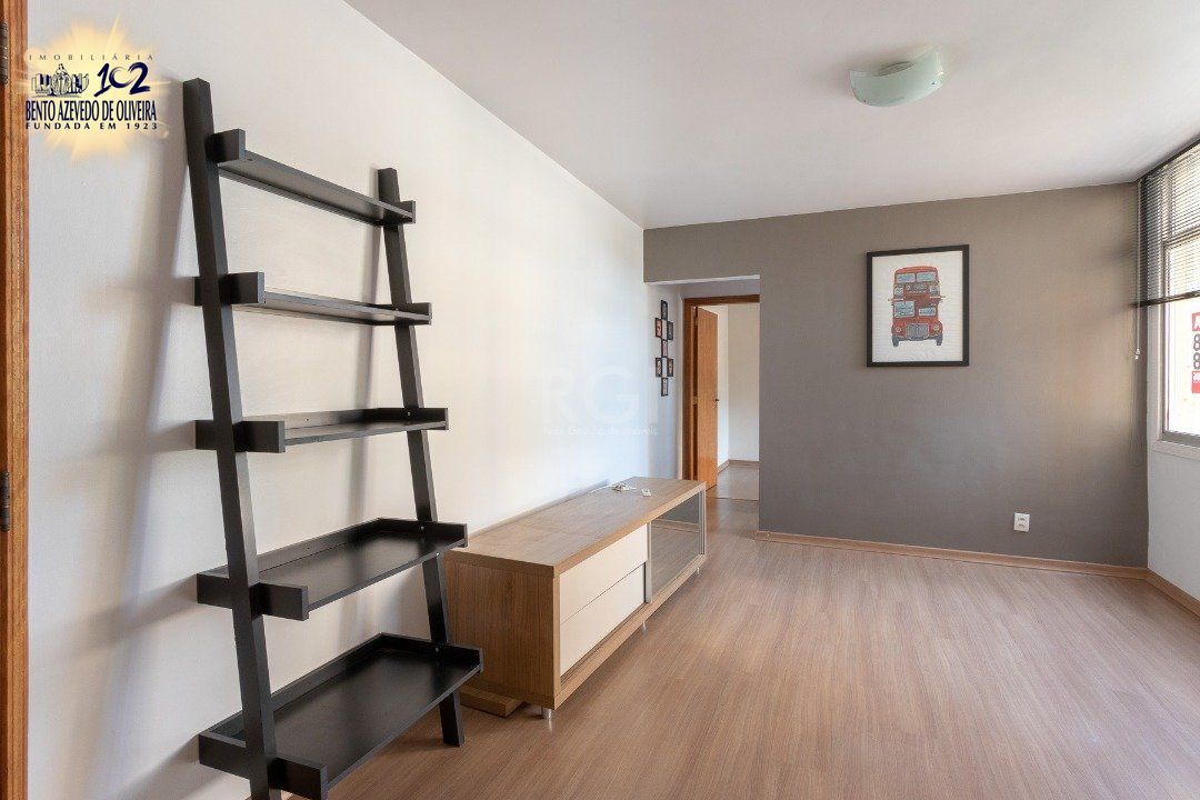 Apartamento de 1 dormitório, living, cozinha, área de serviço e banheiro social.