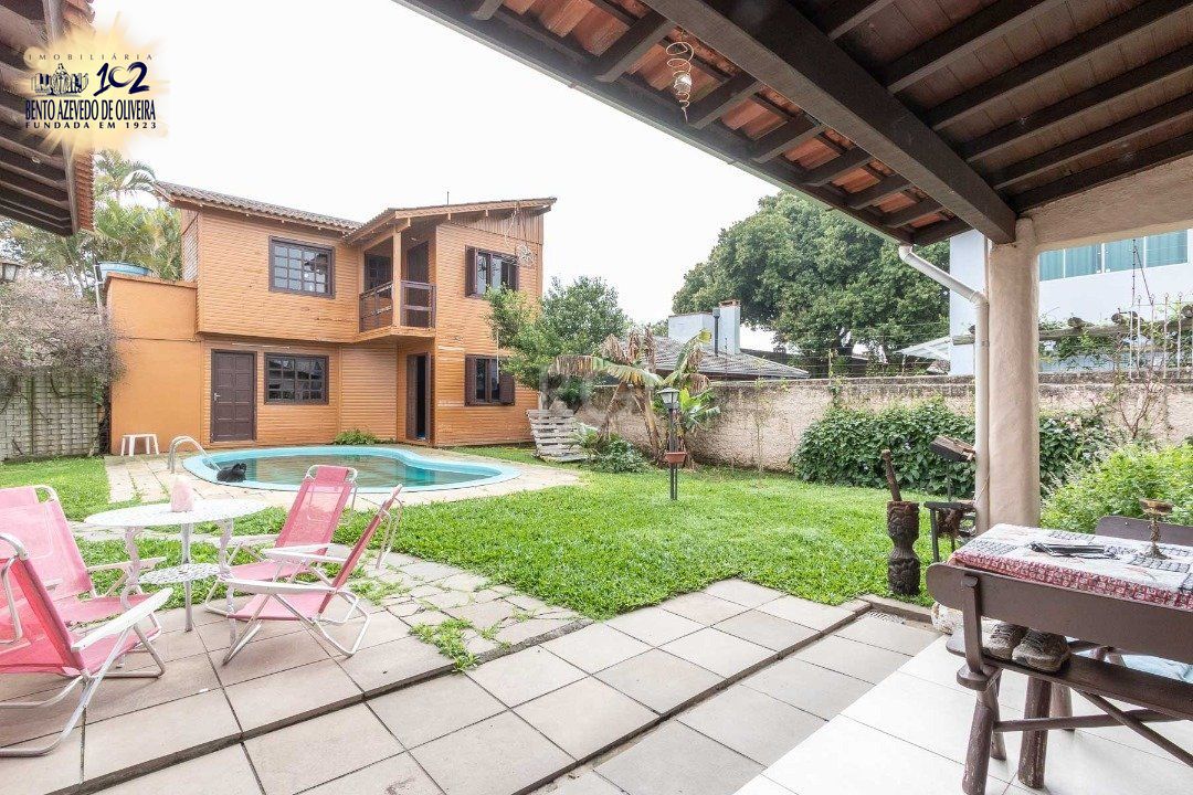 A casa possui 3 dormitórios sendo 1 uma suíte, gabinete, living 3 ambientes com lareira, dependência de empregada com banheiro auxiliar, salão de festas com churrasqueira, piscina, três vagas na garagem, terreno possui 700 m², anexo aos fundos com possibilidade escritório ou casa de hospedes.Venha conhecer