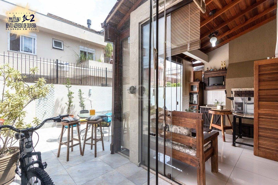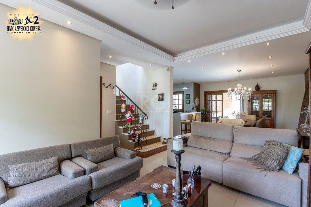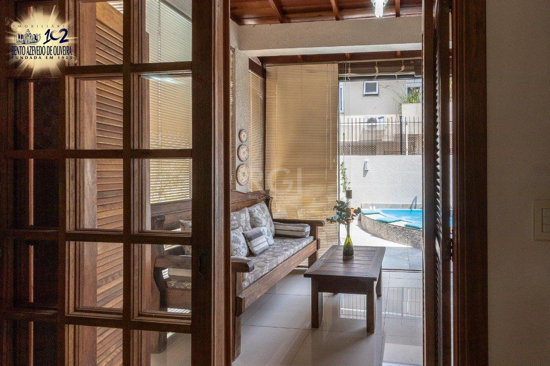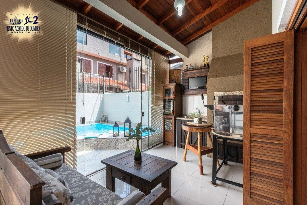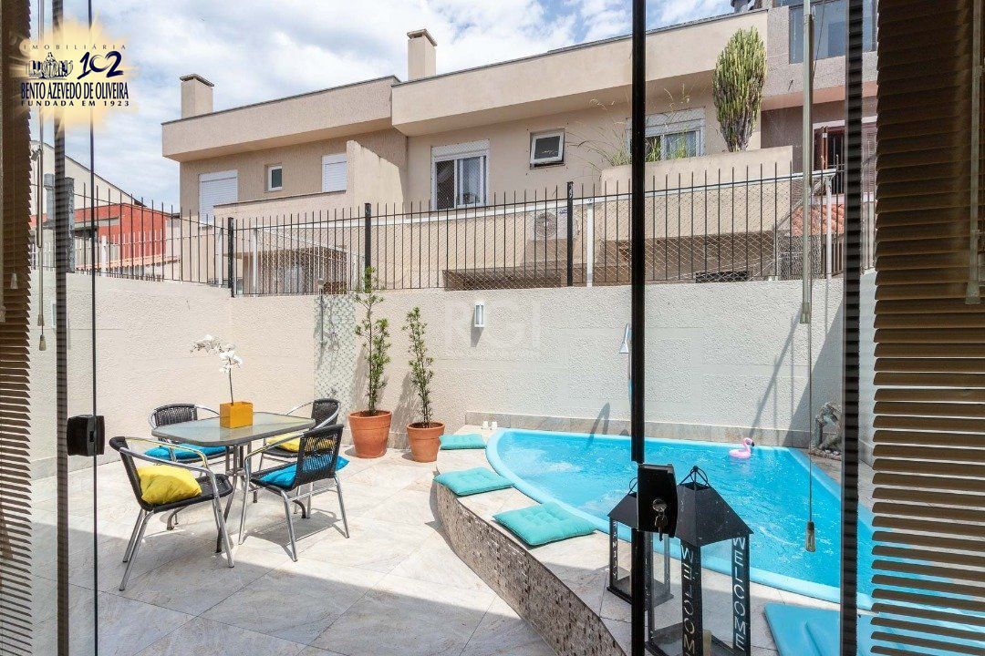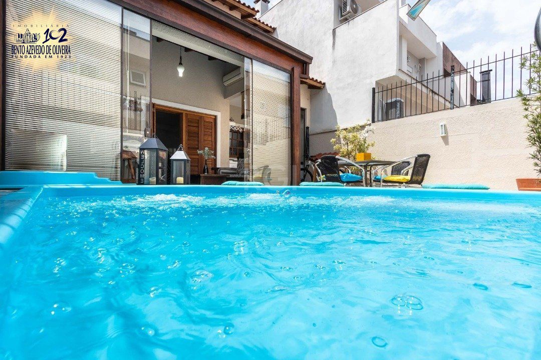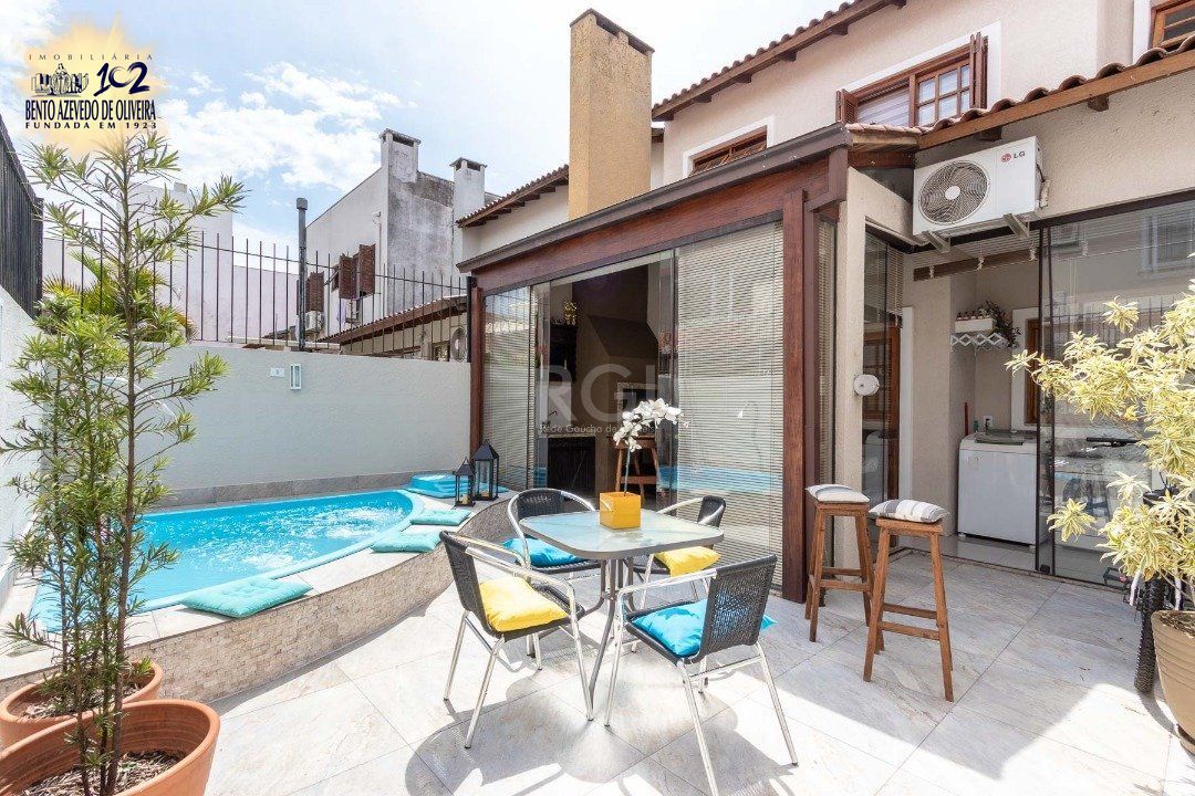 Casa com 02 suítes, living com 02 ambientes, lavabo, lareira, cozinha com espaço gourmet, lavanderia, jardim de inverno, pátio com piscina, 01 vaga de garagem.