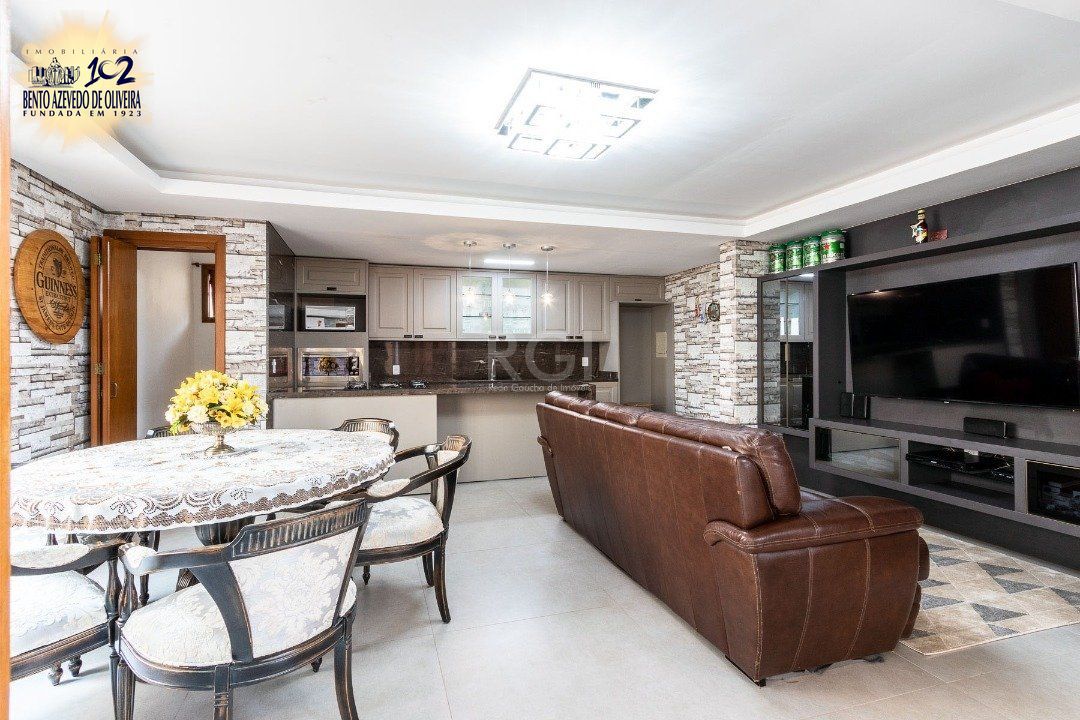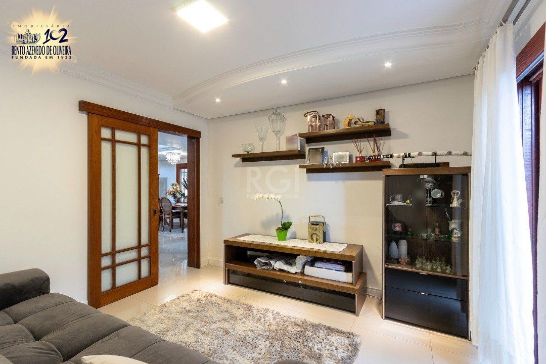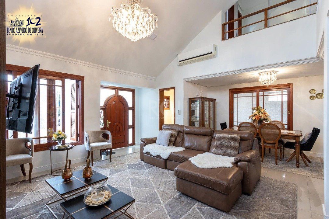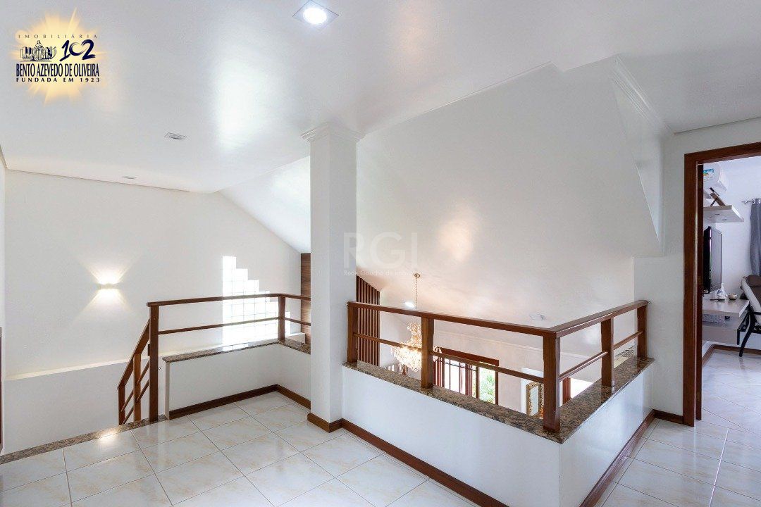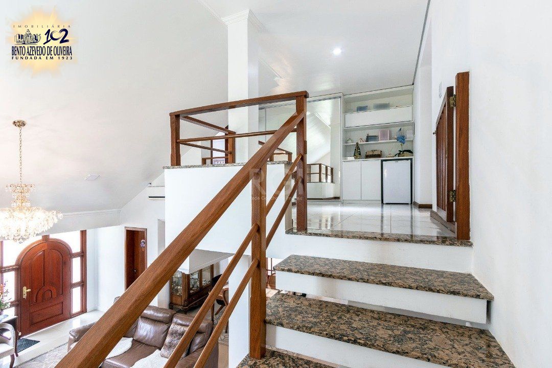 No primeiro piso, living 2 ambientes com porcelanato e lareira, lavabo, ampla cozinha e estar íntimo que pode ser transformado em dormitório ou escritório, com acesso direto ao pátio. Casa com excelente acabamento em madeira.