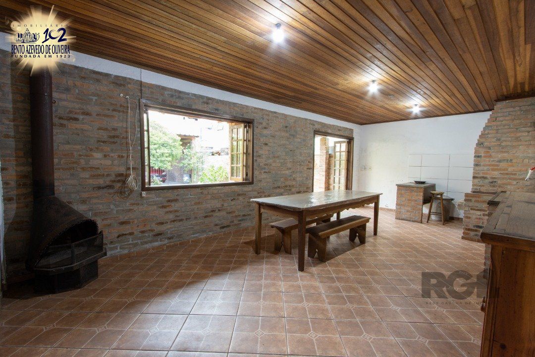 Pátio conta com edícula, 4 vagas de garagem, churrasqueira, fogão à lenha e muito conforto.