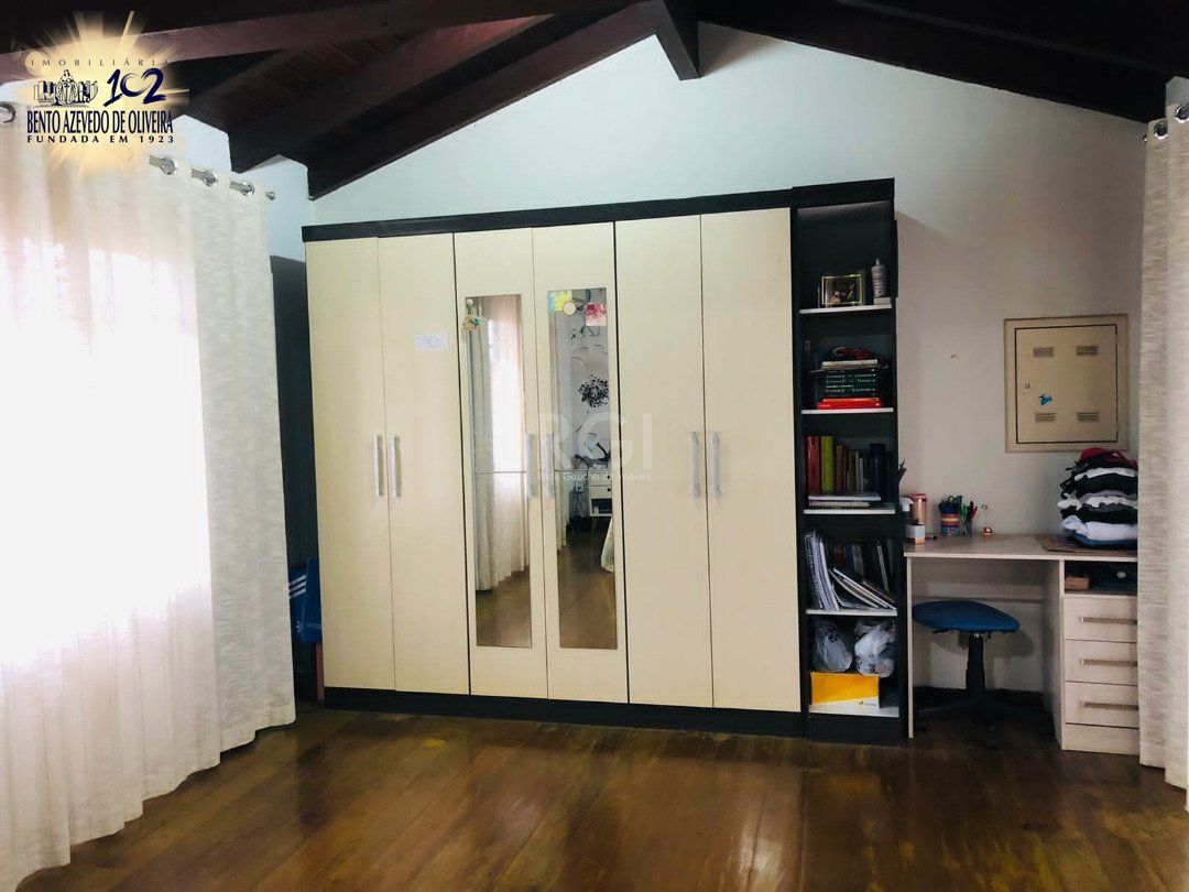 excelente residência em condomínio fechado com somente 11 casas, hall de entrada, lavabo, living 02 ambientes com lareira, sala de jantar, ampla cozinha , quatro dormitórios sendo uma suíte ,closet,e sacada integrada, outros dois dormitórios com sacada integrada, banheiro social , na parte superior outro dormitório com terraço, ampla garagem para dois carros , churrasqueira ,lavanderia , gabinete e pátio na parte dos fundos.